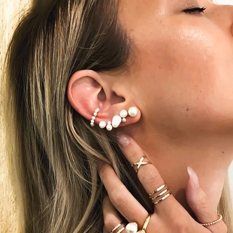 Новинка, лидер продаж, серьги-клипсы с жемчугом, серьги-каффы без п...