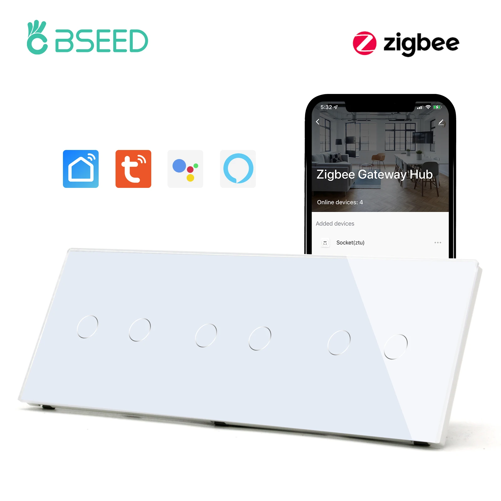 BSEED ZigBee настенный сенсорный выключатель тройной 3/6/9Gang Беспроводной ЕС Smart Touch светильник переключатель Tuya Google Home Управление без нейтральный