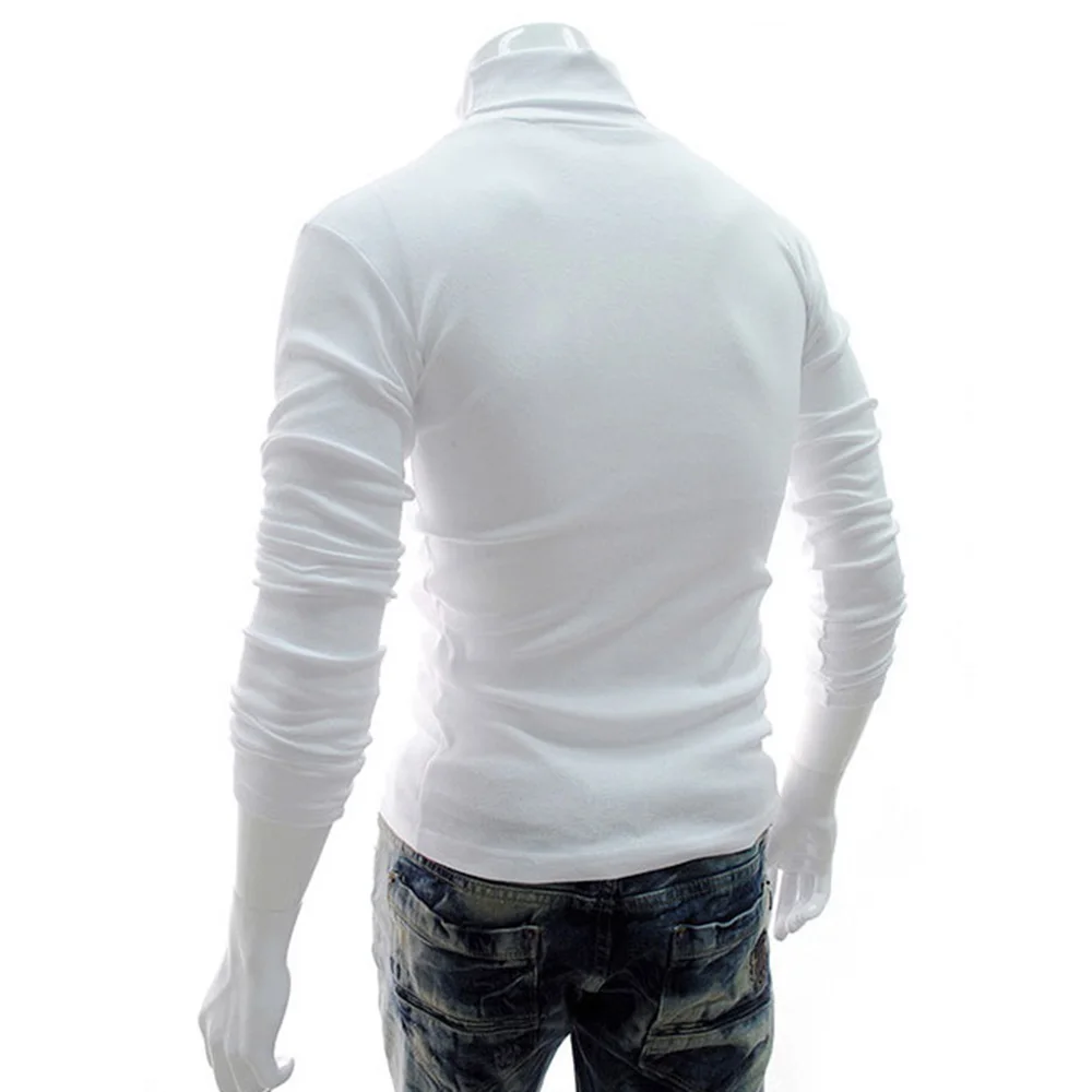 * Описание товара: мужская повседневная тонкая водолазка с длинным рукавом, пуловер, футболка, однотонный цвет