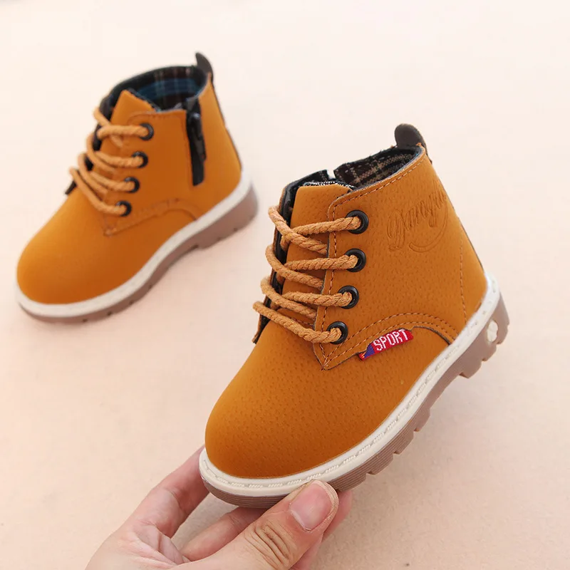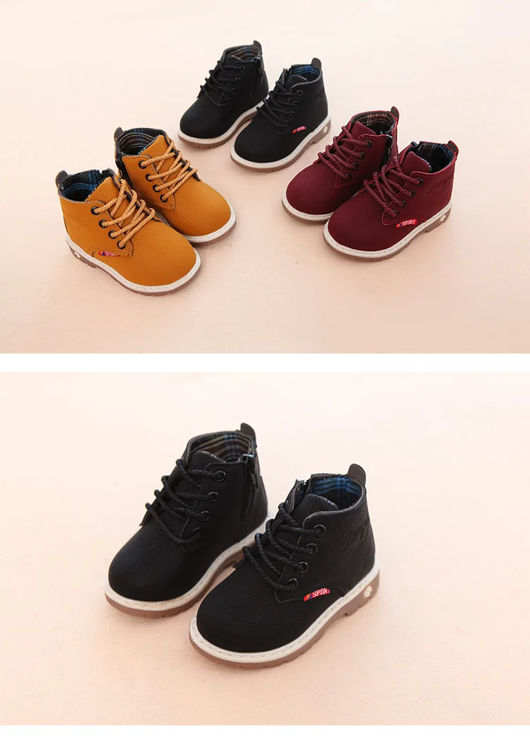 Детская повседневная обувь, Осень-зима, Ботинки Martin, обувь для мальчиков, модные Нескользящие мягкие кожаные ботинки для девочек 21-30, спортивная обувь для бега