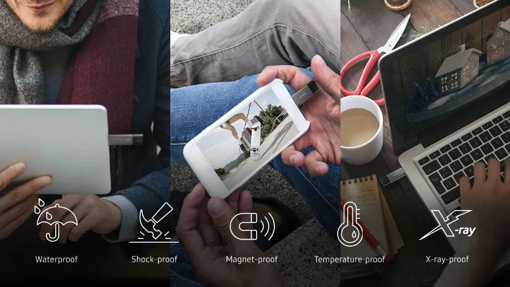 Файлы остаются в безопасности, куда бы вы ни отправились. Руководство Samsung в флэш-памяти делает FIT Plus надежным накопителем для хранения ваших ценных данных. Он работает через все это с водонепроницаемостью ⊃ 1;, ударопрочным ⊃ 2;, термостойким ⊃ 3;, магнитным proof, и рентгеновским body корпусом, все подкреплены ограниченная гарантия на 5 лет ⁶
