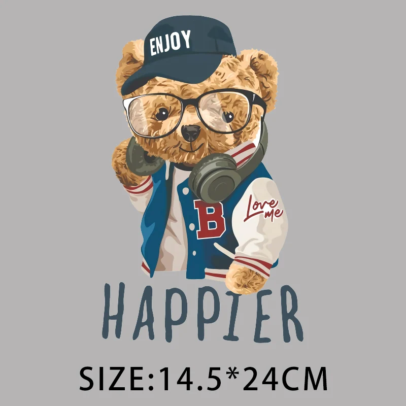Игрушки, термотрансферные модные наклейки в виде плюшевого медведя на одежду, виниловые термонаклейки для глажки, декоративные термочувствительные накладки