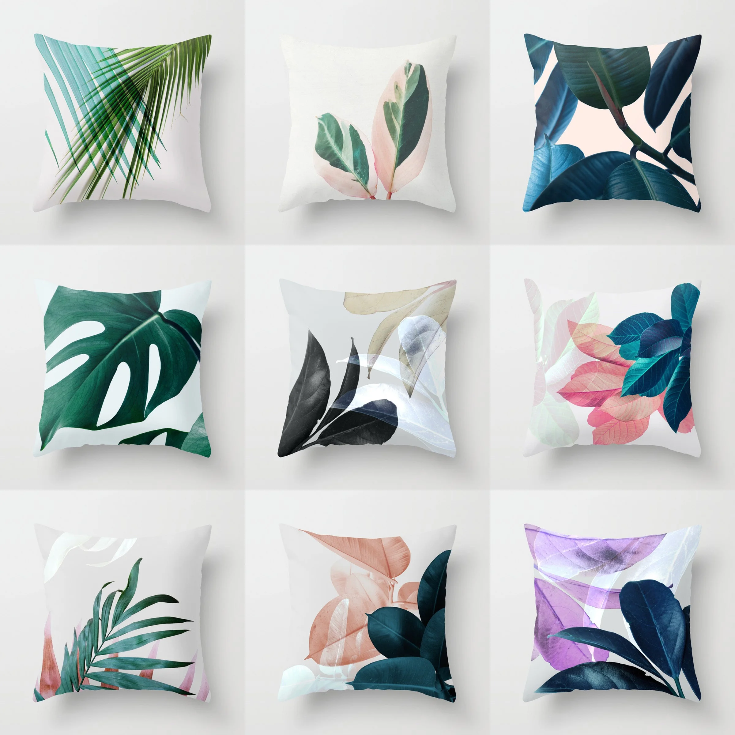 Декоративная подушка с зелеными листьями, Чехол 45*45 см, чехол для подушки из полиэстера, украшение для дома, чехол для дивана