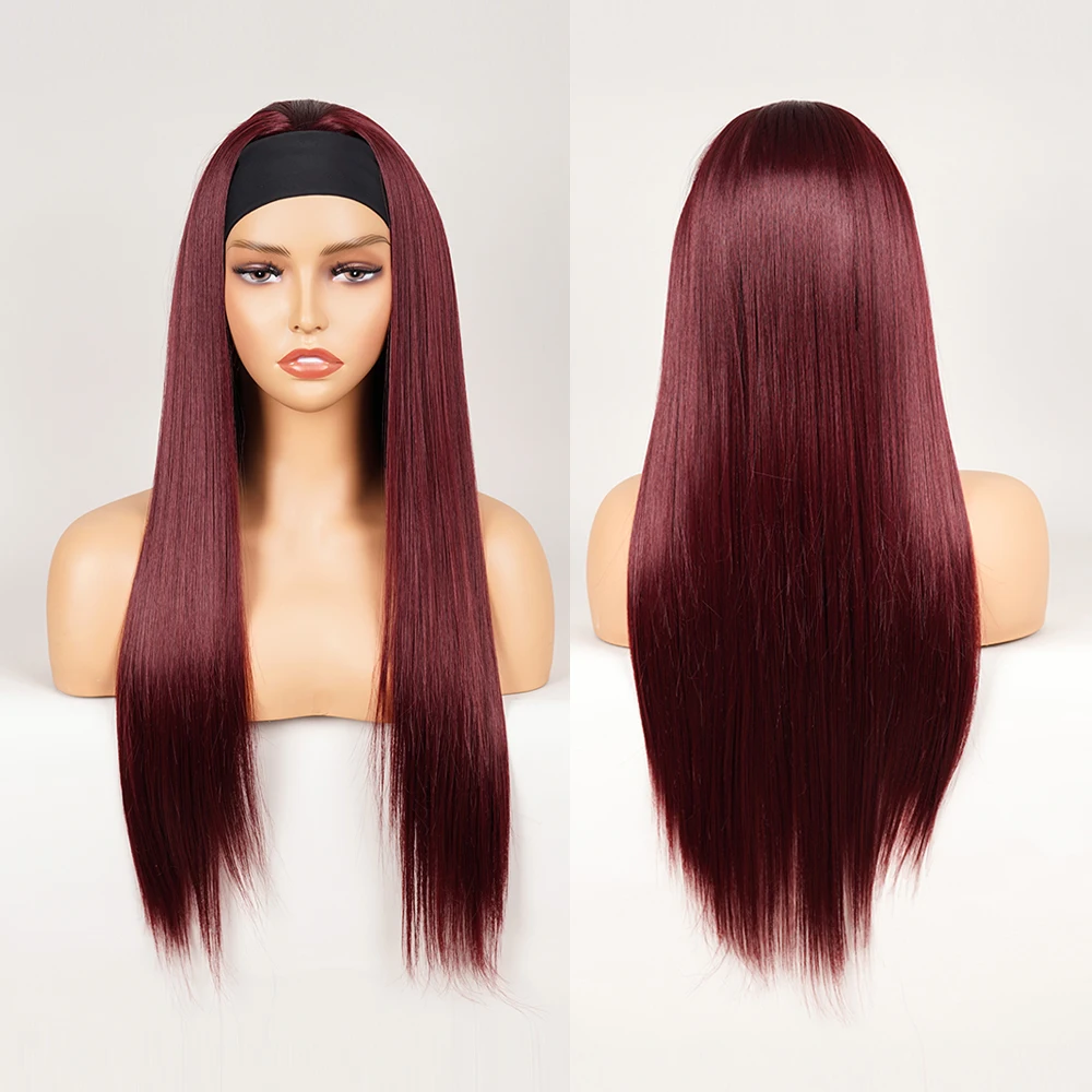 Блестящие длинные прямые Омбре бордовые красные черные синтетические парики для женщин из бесклеевого термостойкого волокна