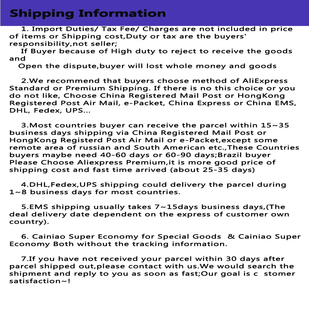 Ниже область, пожалуйста, не делайте заказ:Испания: 51xxx,52xxx,07xxx(Балеарские острова + Сеута и Мелилья) 35xxx,38xxx (Canarias)Франция: 971-978xxx,984xxx,986-988xxxСоединенные Штаты: Гавайи, Аляска, Пуэрто-Рико, Гуам, Виргинские острова, американское Самоа, Северные Марианские острова, Палау, Микронезия, Республика Маршалловы ОстроваБразилия: 5xxxxxxx,6xxxxxxx (почтовый индекс), не делайте заказ.С 1 декабря 2019 года покупатель из Бразилии должен предоставить CPF (личный налоговый идентификатор), в противном случае ваша посылка будет разрушена.