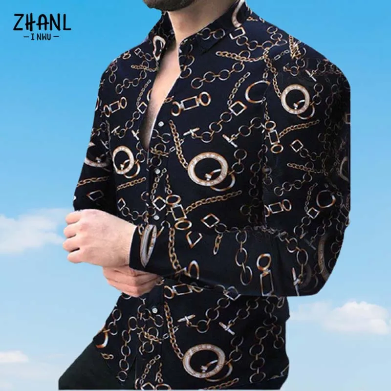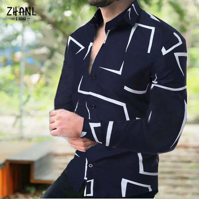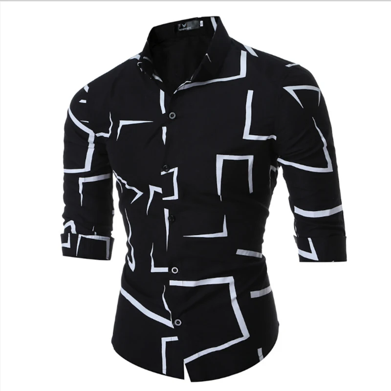 Мужская приталенная рубашка с длинным рукавом, черная Повседневная рубашка с геометрическим принтом, уличный Топ для осени, 2021