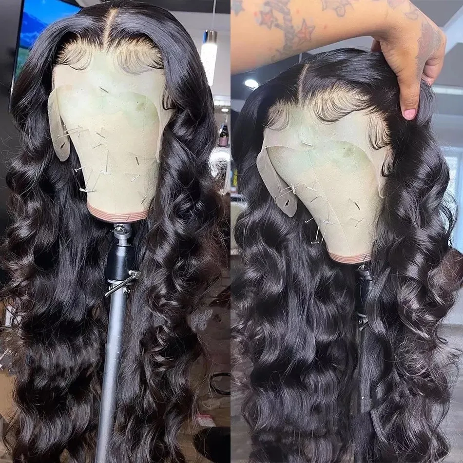 Парик на сетке тела с волнистыми волосами, парики из человеческих волос для черных женщин, прозрачные Hd бесклеевые бразильские волосы, предварительно выщипанные, свободные, с глубокой волной, парик на сетке