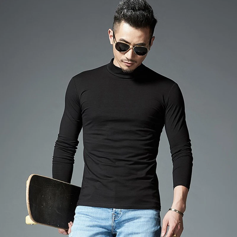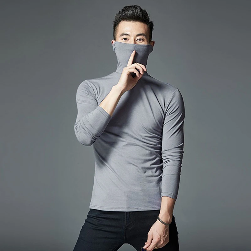 * Описание товара: мужская повседневная тонкая водолазка с длинным рукавом, пуловер, футболка, однотонный цвет