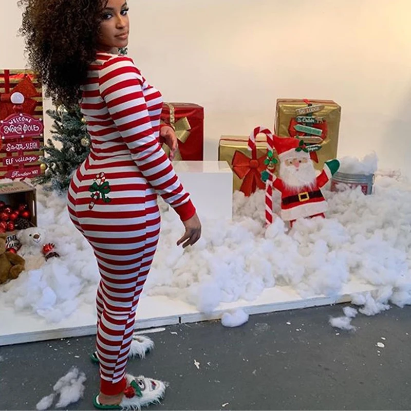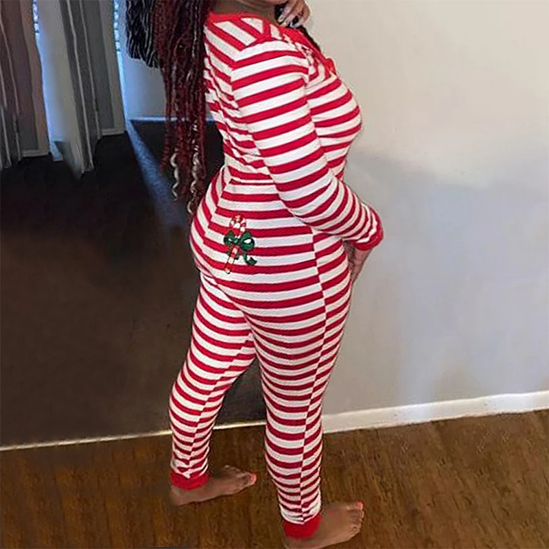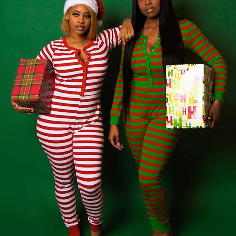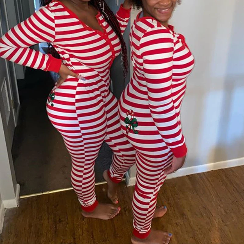 Женская рождественская Пижама для семьи 2021, одежда для сна, пижамный комплект в полоску с длинным рукавом, женские облегающие комбинезоны, осенняя одежда