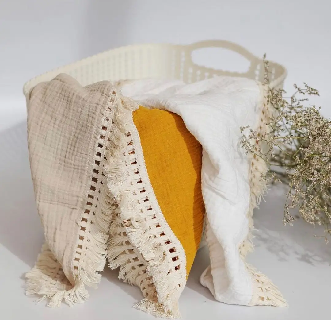 Детское одеяло, пеленка из муслина для новорожденных, хлопковое Марлевое одеяло с кисточками, детское постельное одеяло