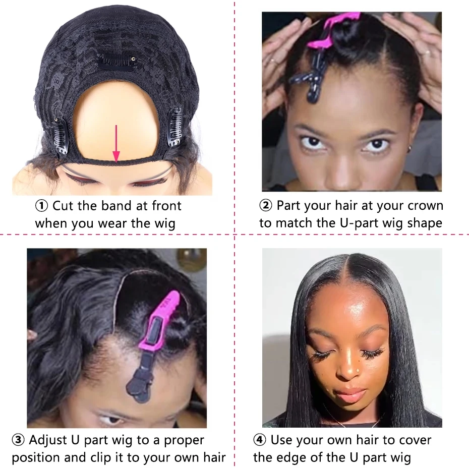 U-образные парики из человеческих волос, курчавые прямые парики из ...