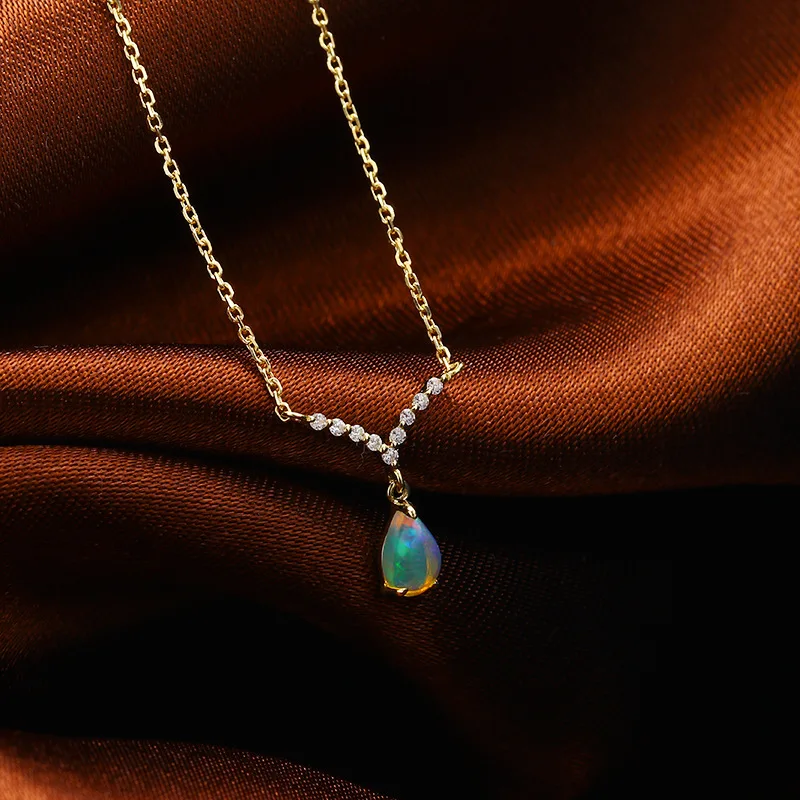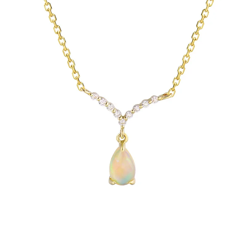 BK 9k подлинное золото натуральный опал ожерелье для женщин с цирконом V образный кулон Юбилейная Свадьба Помолвка Ювелирные изделия1. Основной камень-Опал.2. Кольца сделаны в 9k.3. Пожизненная гарантия Butterflykiss и сертификат подлинности включают подарочную коробку для ювелирных изделий.
