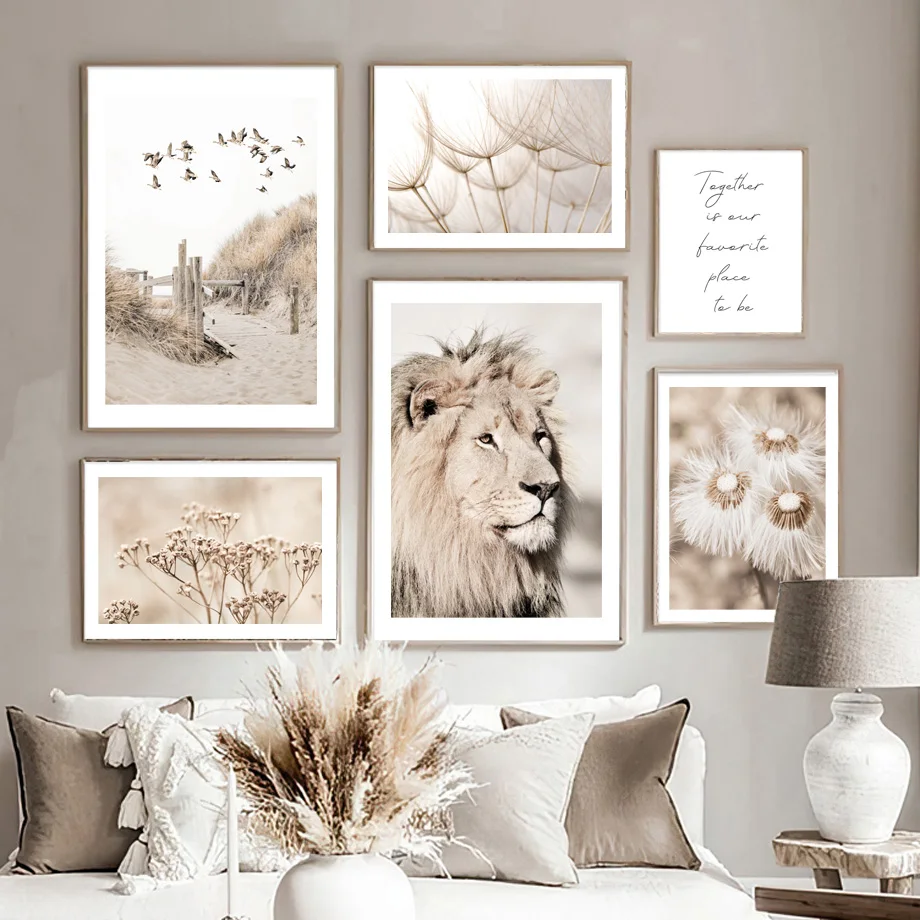 Одуванчик тростник Орхидея Лев бежевый пейзаж скандинавский стиль н...