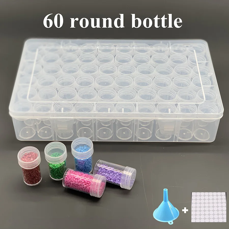 Банки для алмазной вышивки сделай сам, квадратныеКруглые Ящики для хранения картин, аксессуары для вышивки бисером, контейнер для мозаики, 60 бутылок