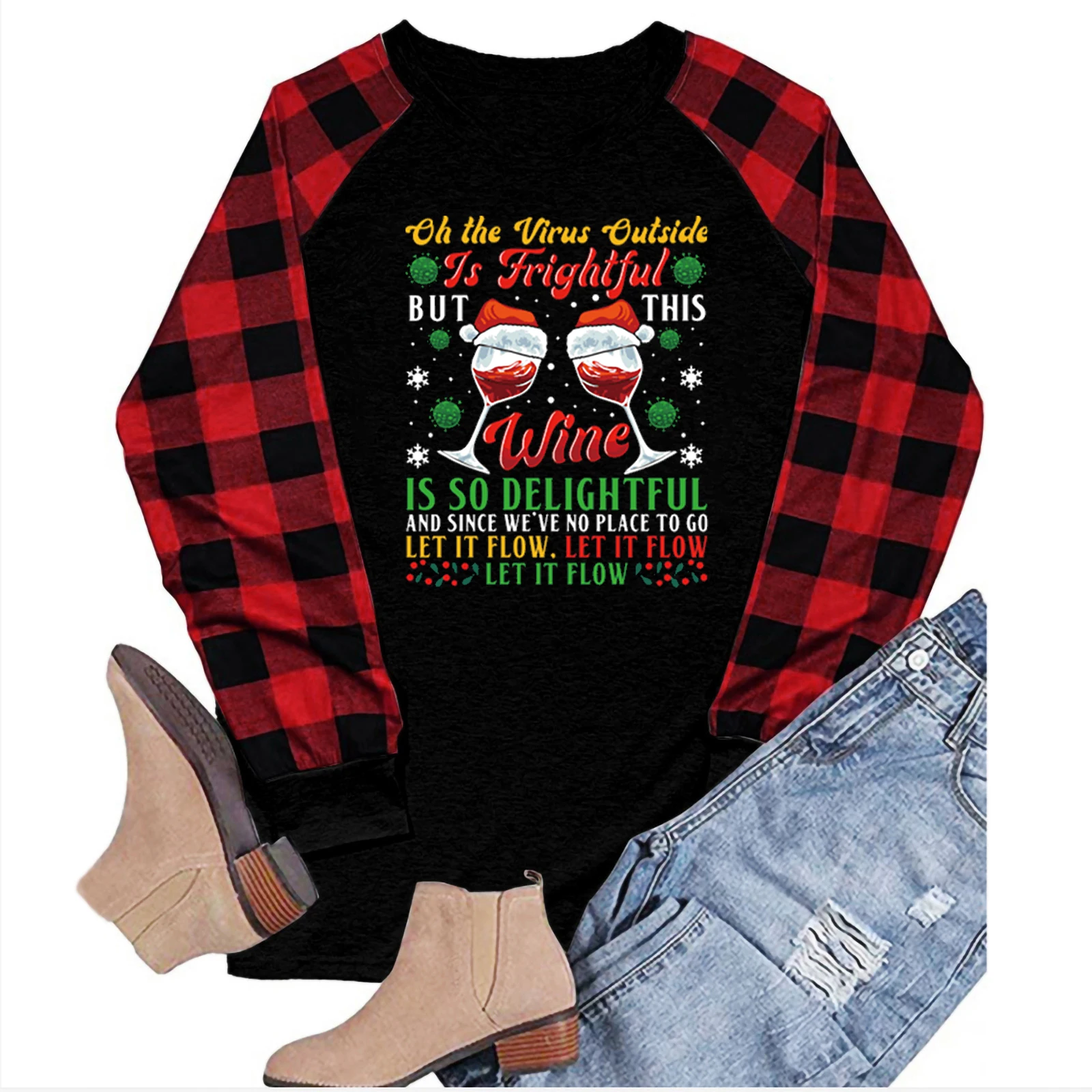 Женская футболка с длинным рукавом и принтом бокала в рождественском стиле, осенняя футболка с круглым вырезом и графическим принтом, повседневные рождественские Топы для женщин