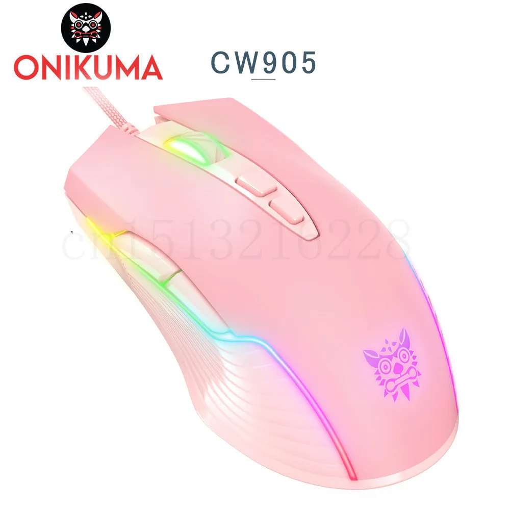 Проводная игровая мышь ONIKUMA CW905, USB, 6400 DPI, розовая игровая мышь с дышащими светодиодными цветами для ноутбука, ПК, геймера
