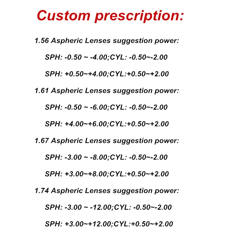Страна: PL Lenses Color: Ordinary resin lens Lens Index: 1.56 Lenses Degree: -0.75 Доставка: Standard Shipping 01.12.2021