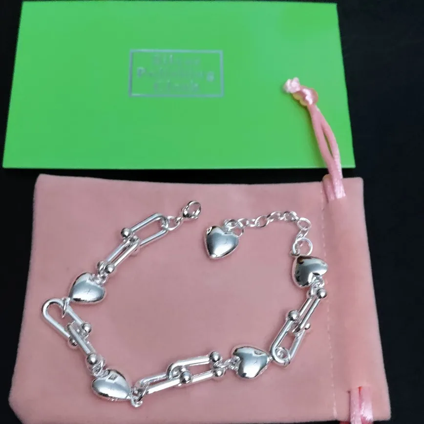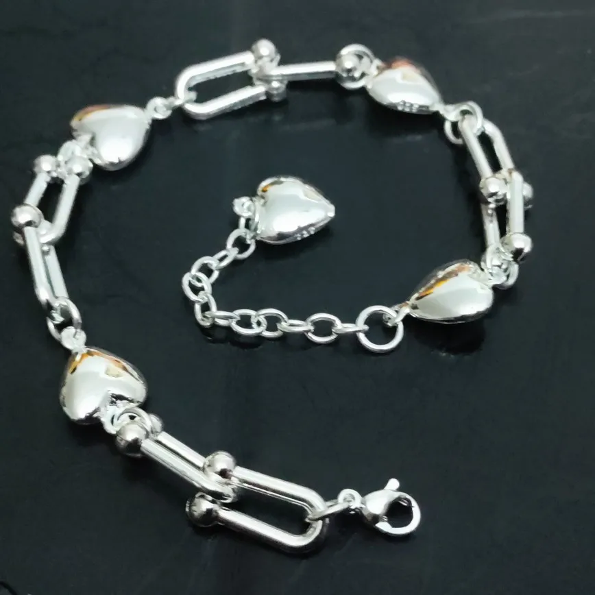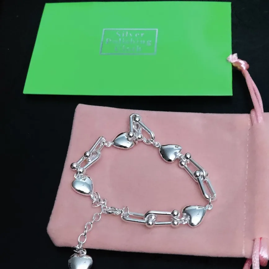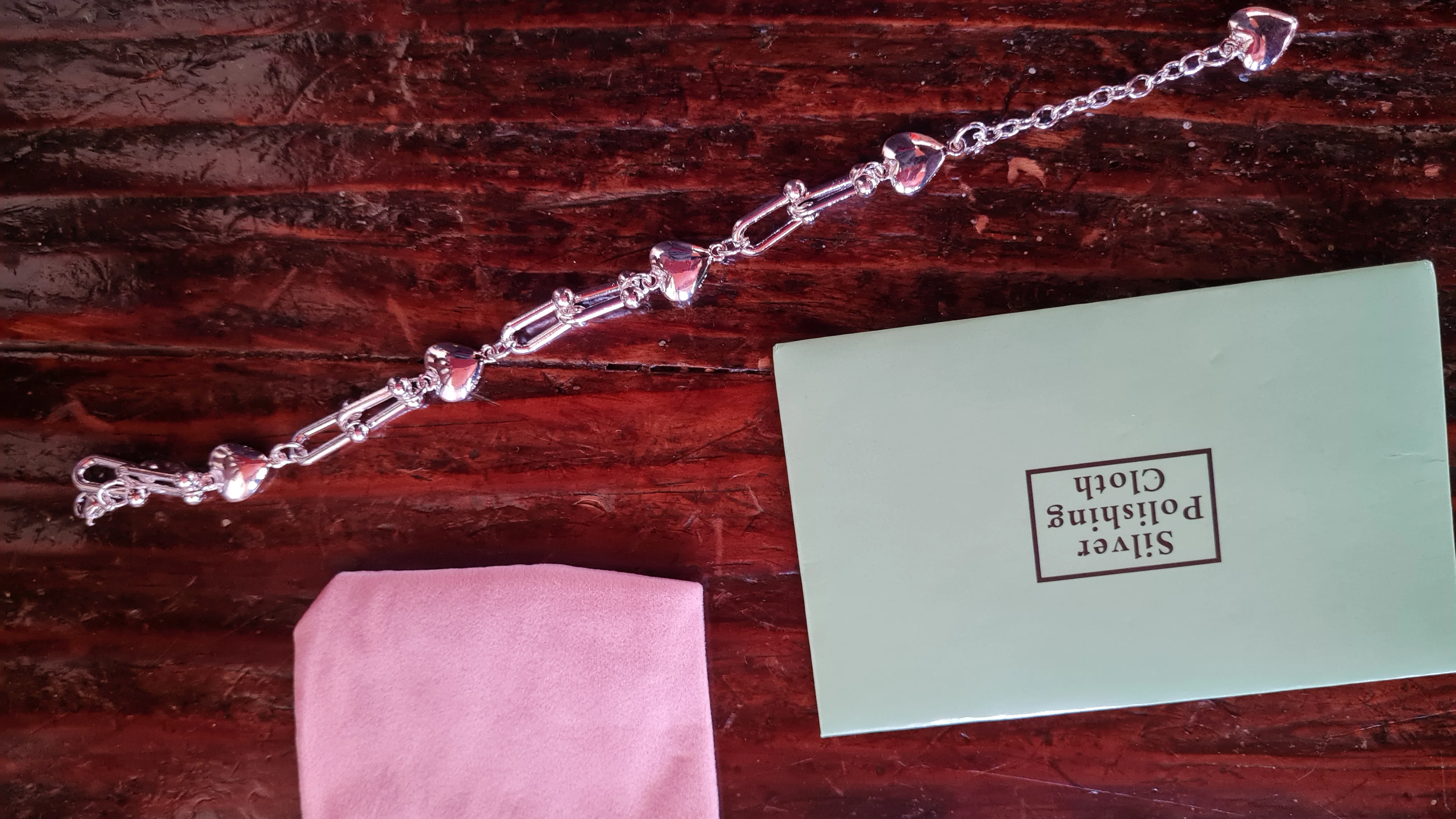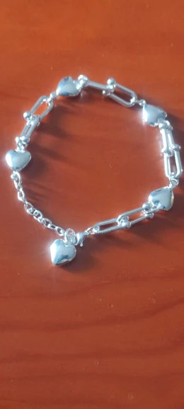 Красивый браслет с ссылками и сердцами в сочетании с большими размерами и цепочкой, чтобы сделать его короче, хорошо обернут и презентация в подарок в дополнение к салфетке для чистки отслеживания и подтверждения получения я рекомендую товар и продавца. ⭐⭐⭐⭐⭐
