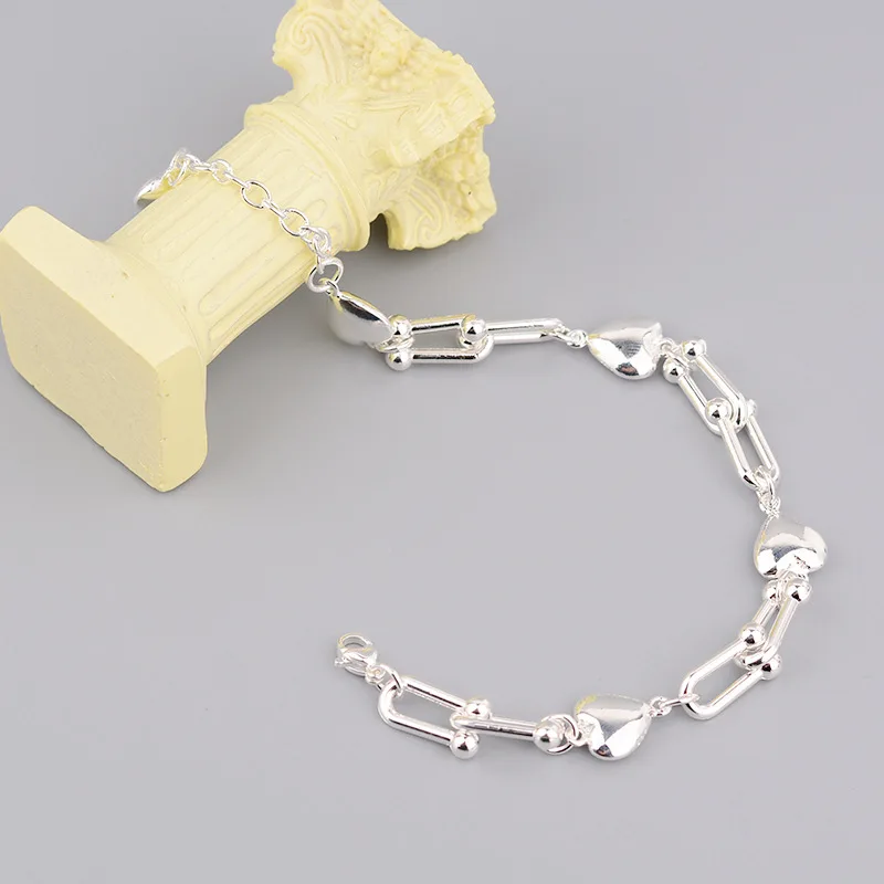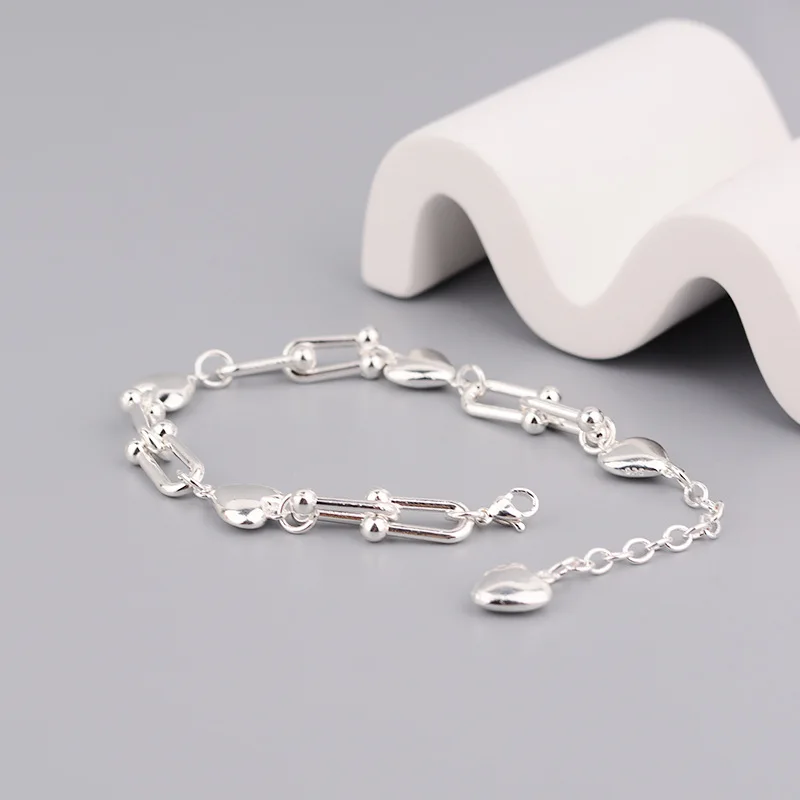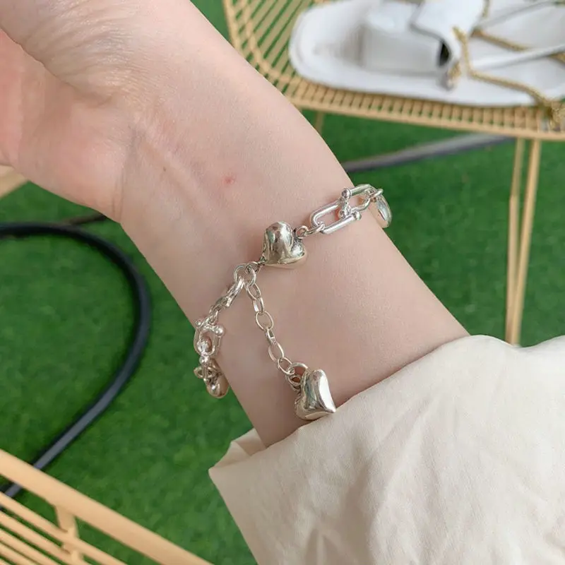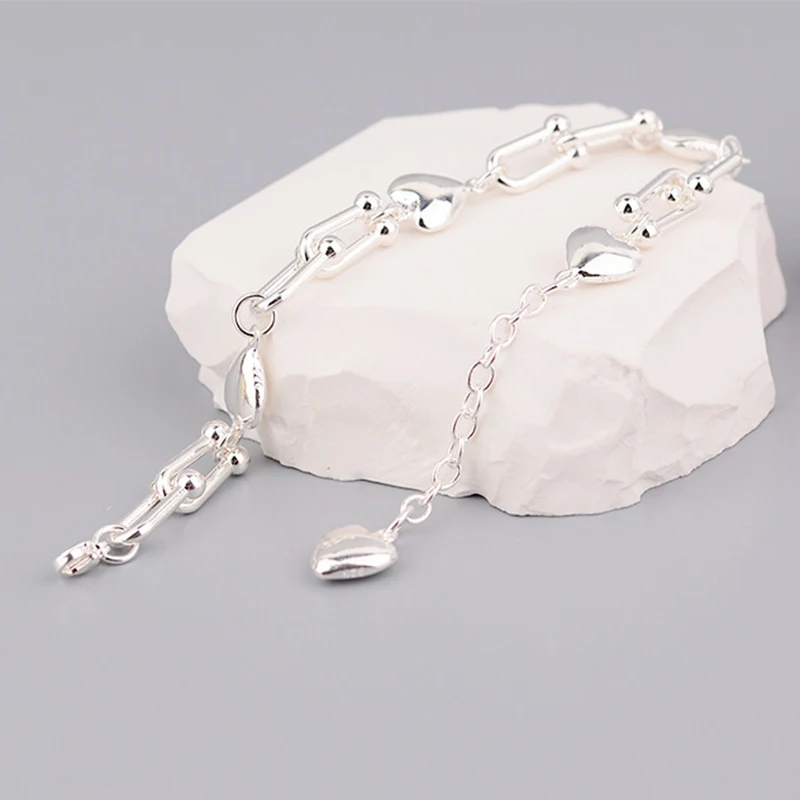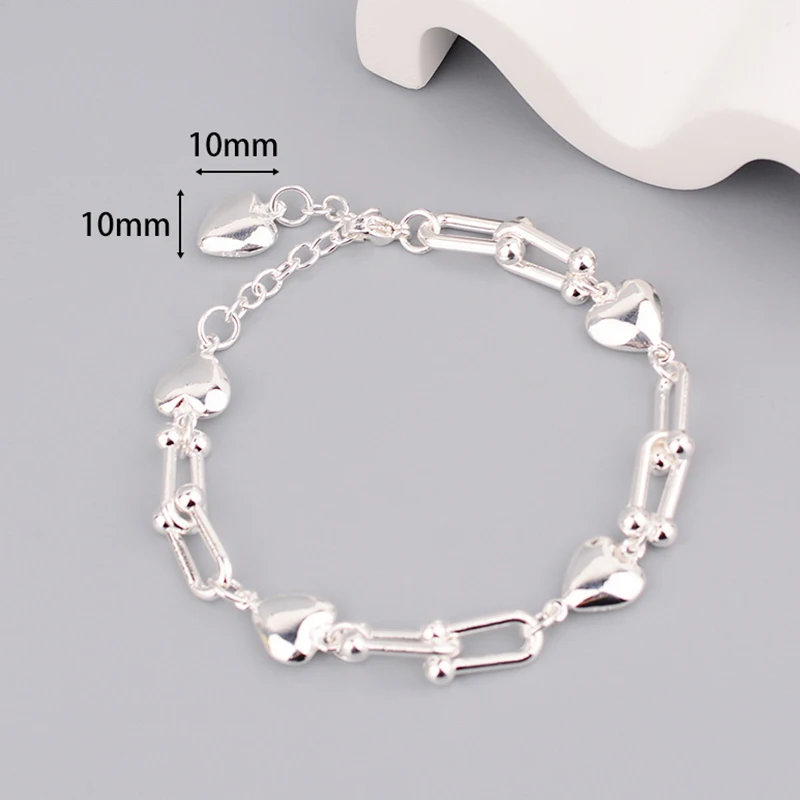 Красивый браслет с ссылками и сердцами в сочетании с большими размерами и цепочкой, чтобы сделать его короче, хорошо обернут и презентация в подарок в дополнение к салфетке для чистки отслеживания и подтверждения получения я рекомендую товар и продавца. ⭐⭐⭐⭐⭐