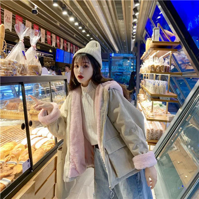 Joinyouth 2022 шикарные вельветовые куртки из овечьей шерсти для женщин Harajuku зимняя верхняя одежда с капюшоном и карманами толстые теплые корейские повседневные пальто
