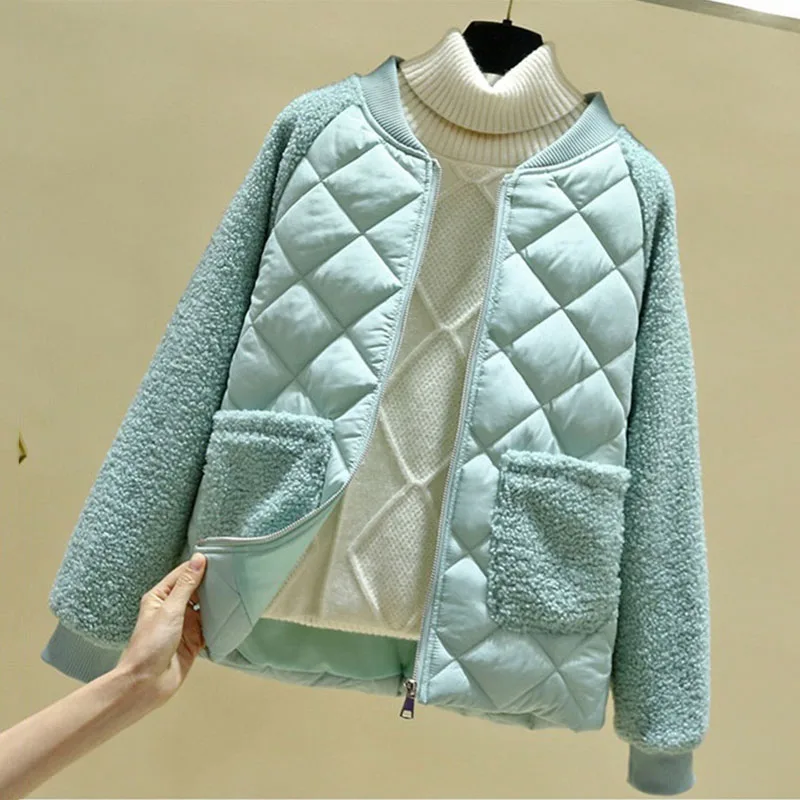 Новинка 2021, Зимняя женская хлопковая куртка из искусственной овечьей шерсти, тонкая светильник короткая парка, теплая Женская хлопковая стеганая куртка, Повседневная Верхняя одежда 1591