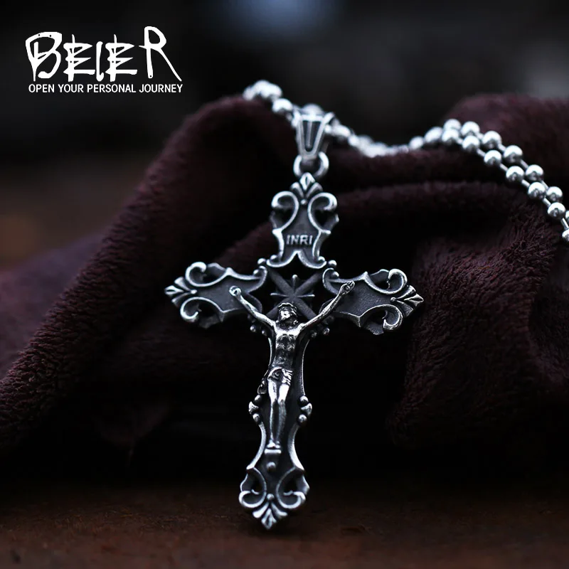Мужская цепочка с кулоном в виде креста BEIER, католическая цепочка с кулоном в виде креста, винтажное Ювелирное Украшение в христианском стиле