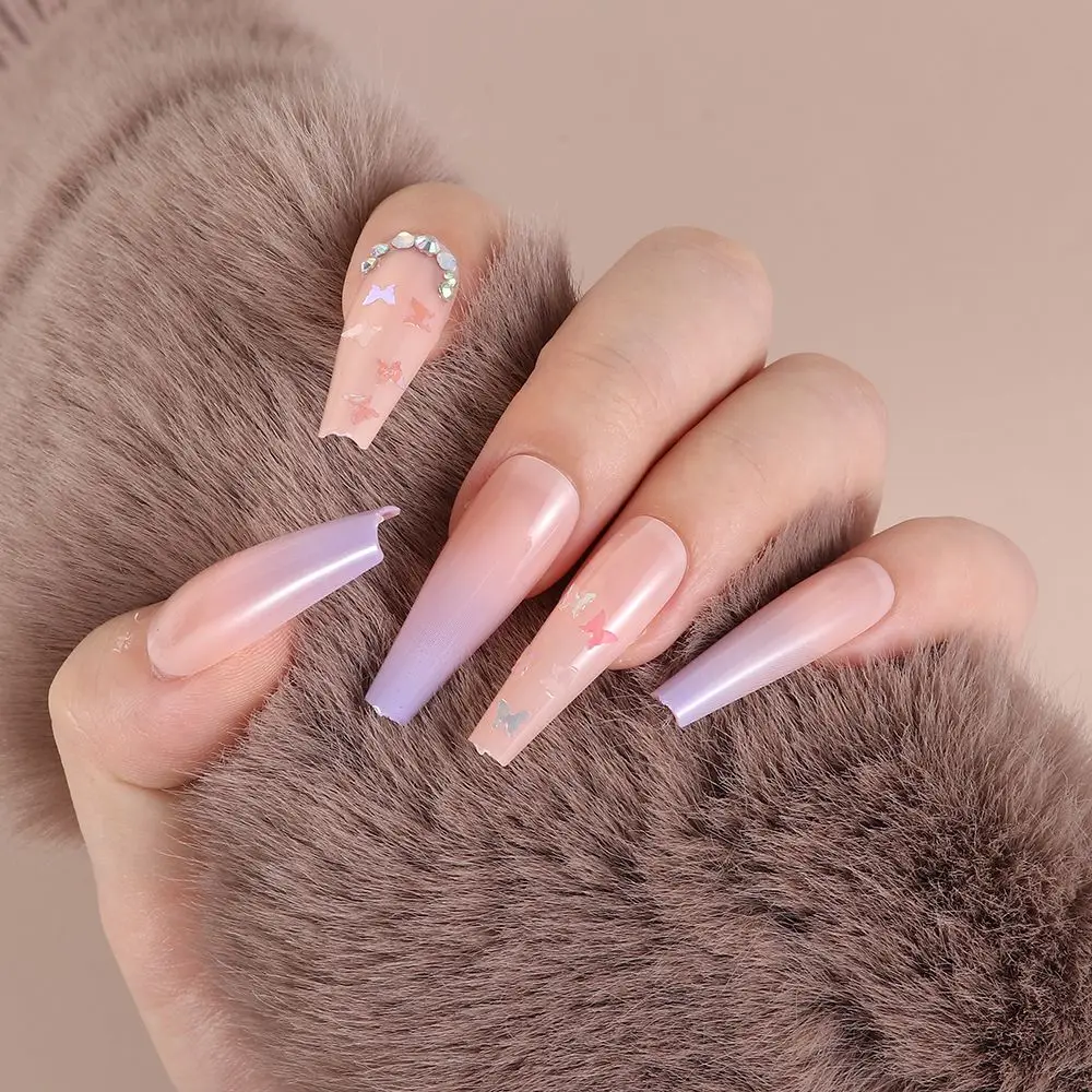 Сиреневые градиентные накладные ногти с узором бабочки полное покры...