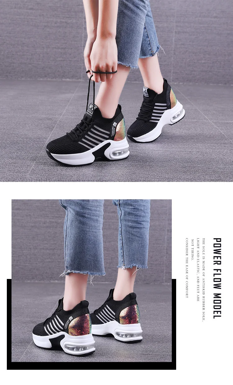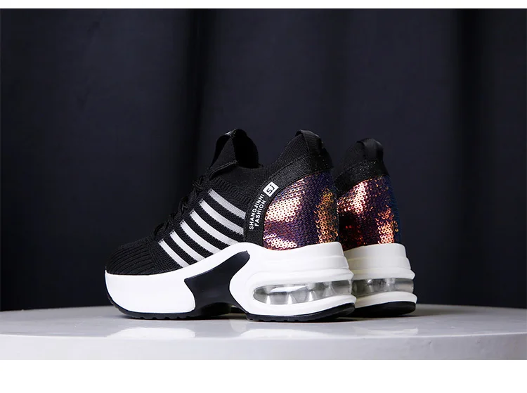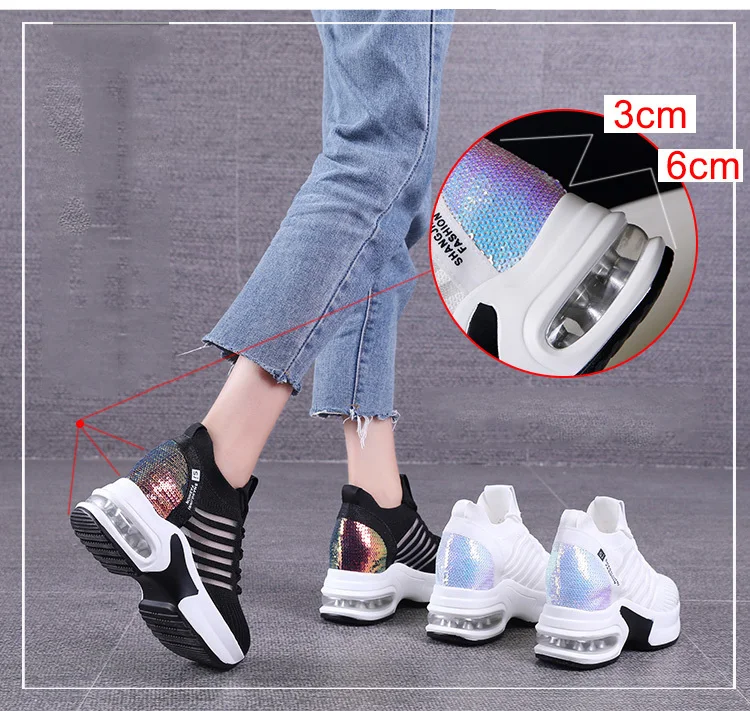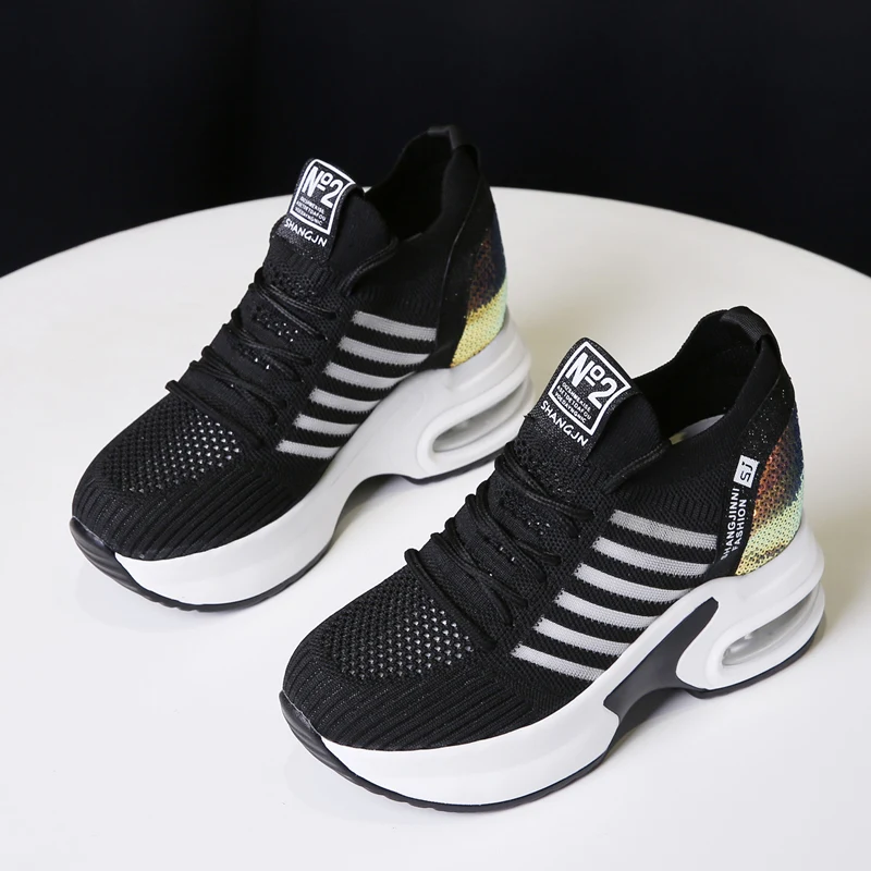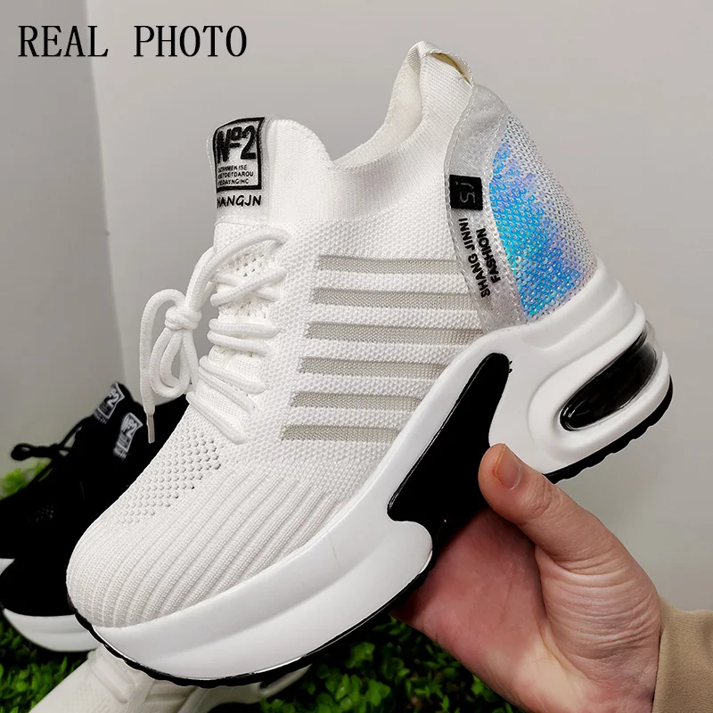 Женская уличная спортивная обувь, дышащая сетчатая беговая Обувь для женщин, обувь для бега, увеличивающая рост, кроссовки на платформе, не сужающиеся книзу массивные кроссовки