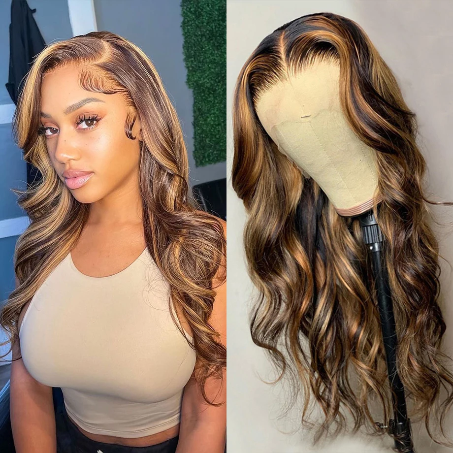 Парик телесной волны на сетке спереди, Hd, прозрачные, предварительно выщипанные, светлые, на сетке, T-образные парики для черных женщин, 30, 38 дюймов, искусственные волосы