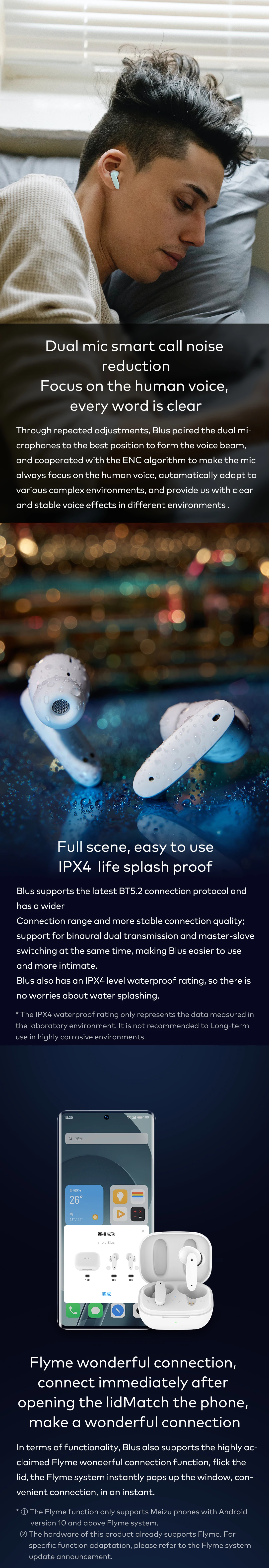 TWS-наушники Meizu Mblu Blus с поддержкой Bluetooth 5,2