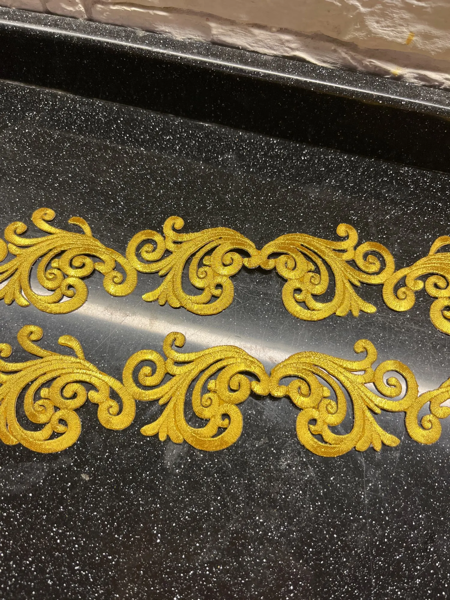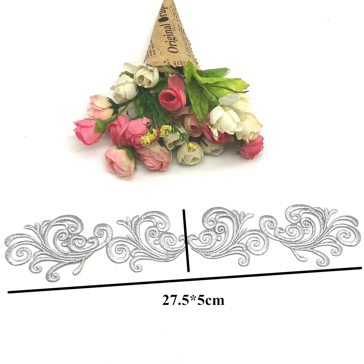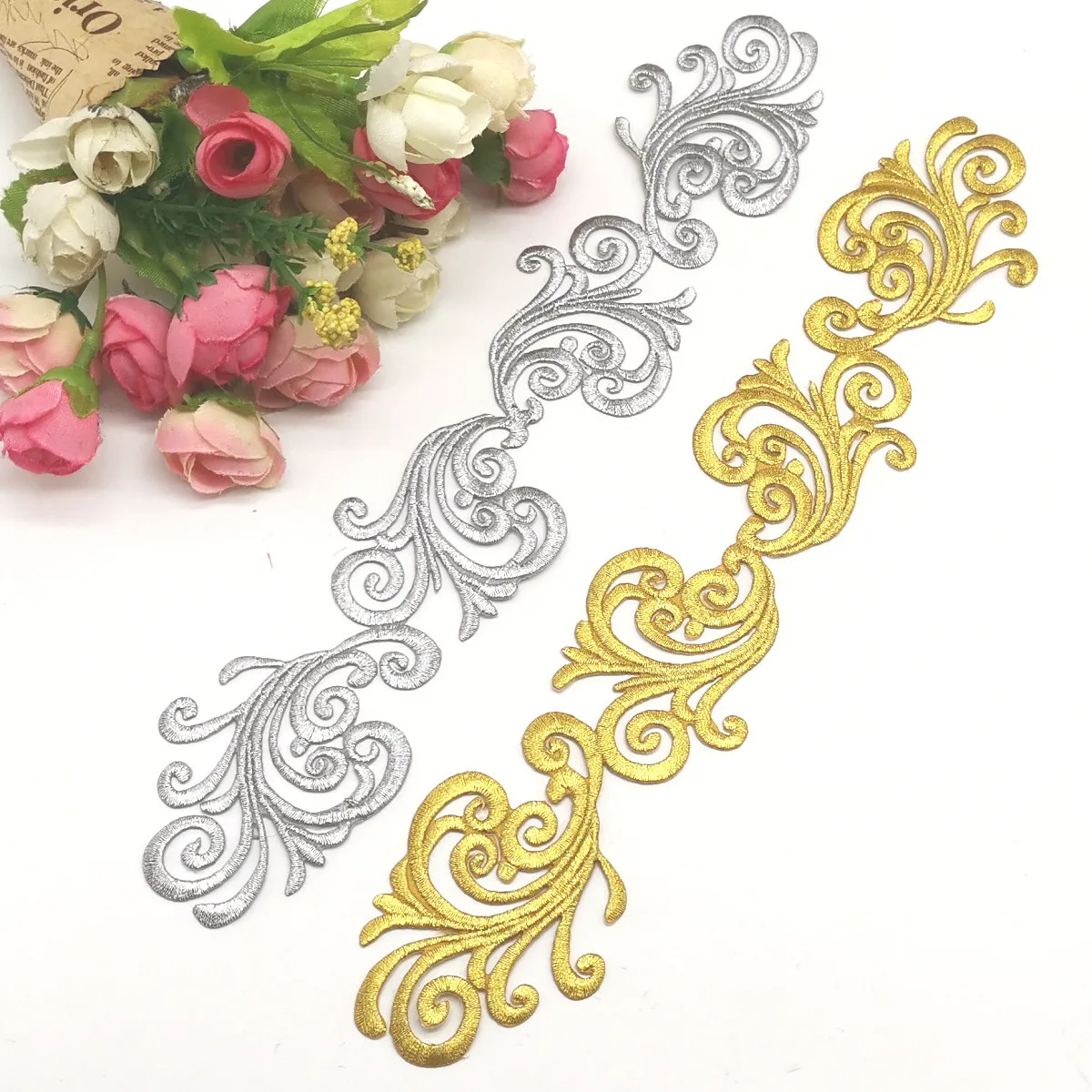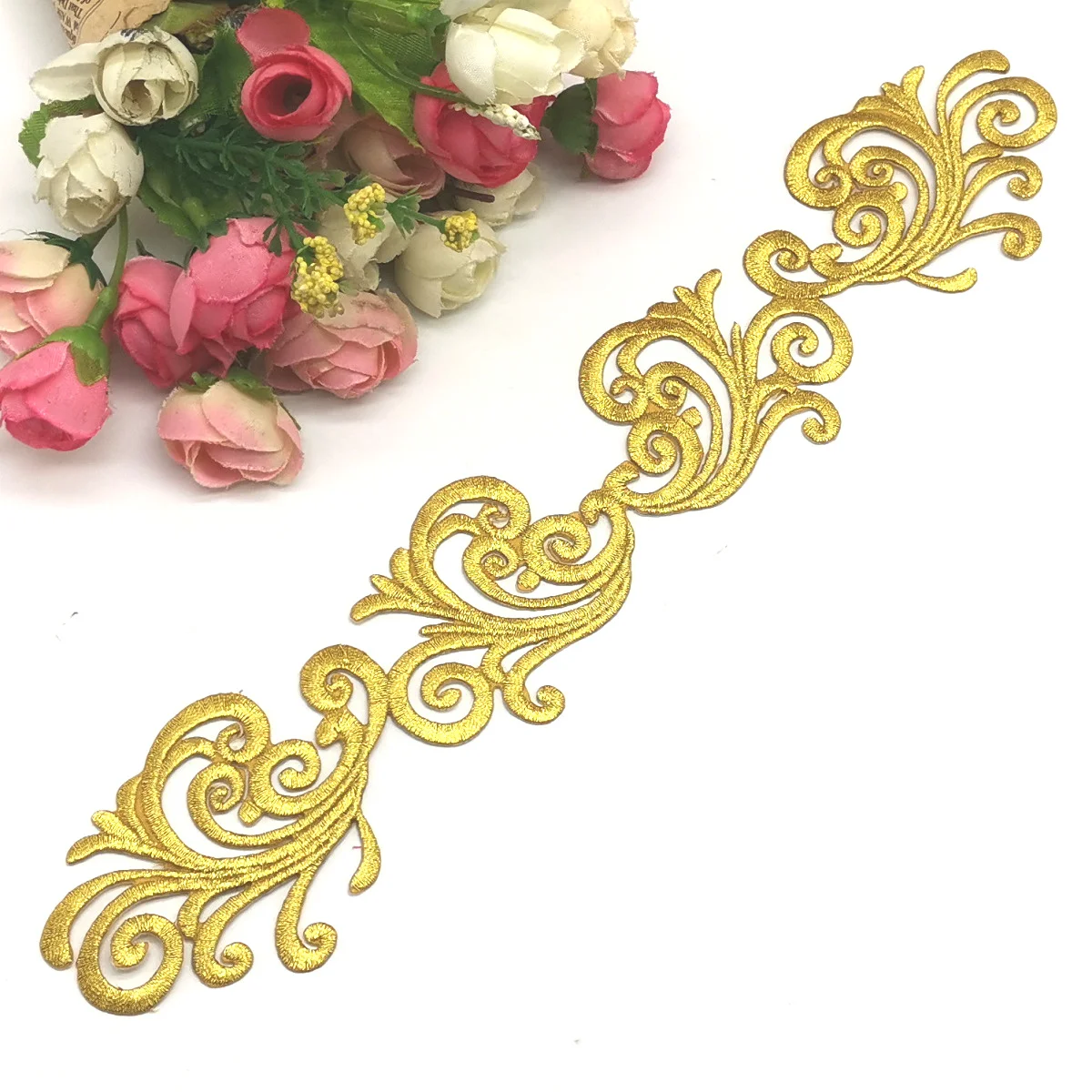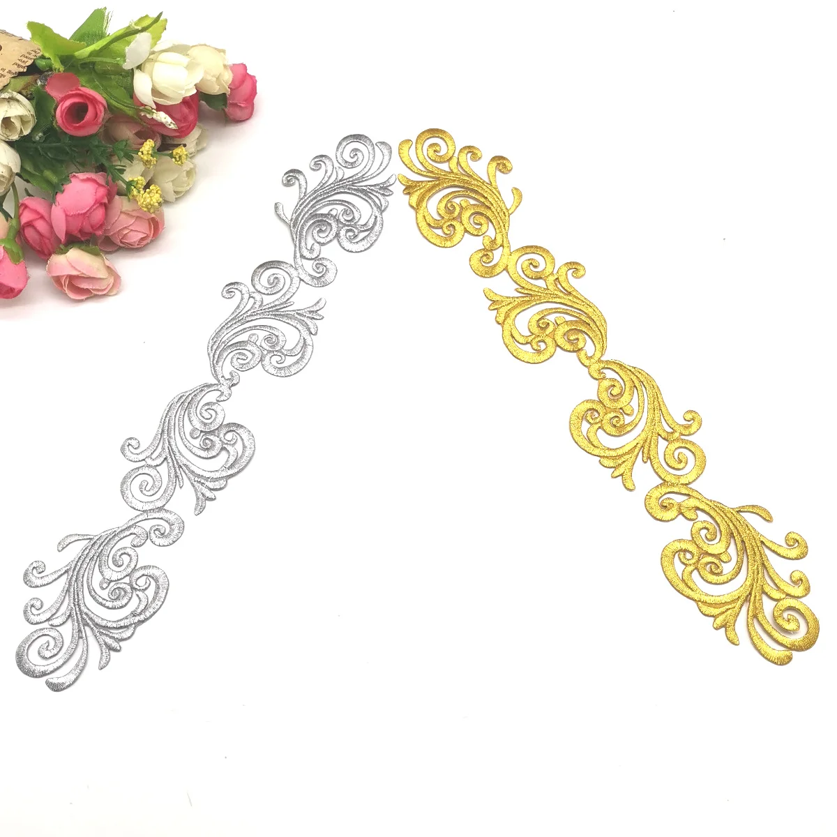 Золотая вышивка аппликация кружева Косплей Костюм нашивки Золотой и Серебряный цветок утюгом на Венецианской отделке 24*6 см