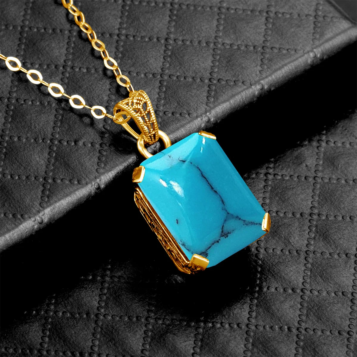 Szjinao Высокое качество Серебро 925 бирюзовое ожерелье кулон для женщин золотой цвет ручной работы прямоугольник годовщина Vinitage ювелирные изделия