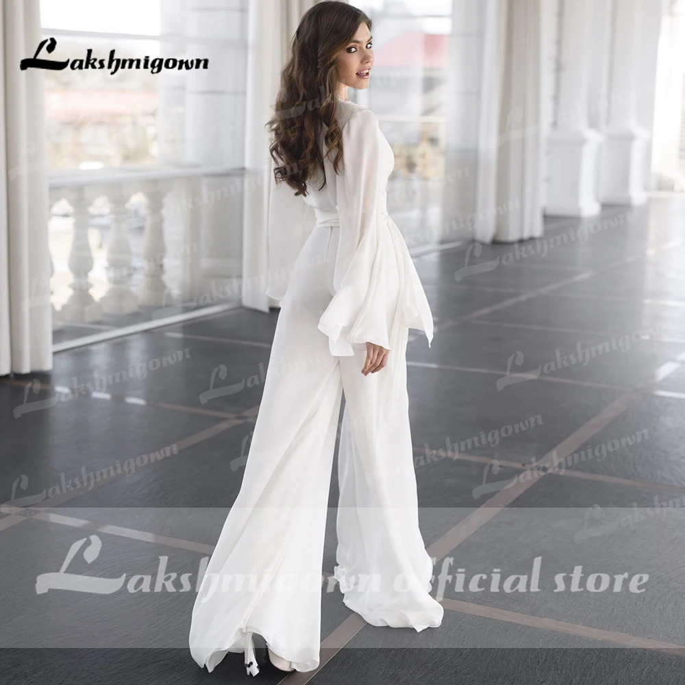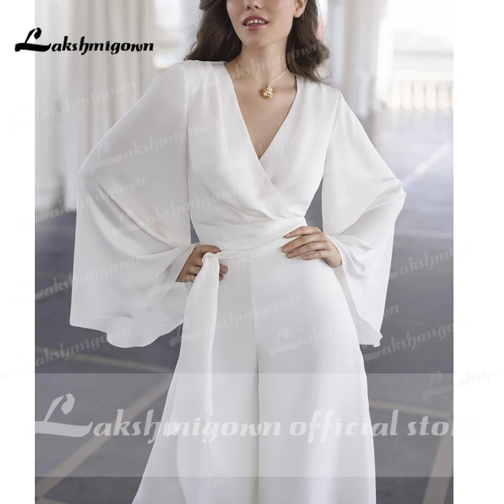 Белое свадебное платье, летние комбинезоны в богемном стиле с V-образным вырезом и длинными рукавами, пляжные свадебные платья, брюки в стиле бохо, женское платье, 2022