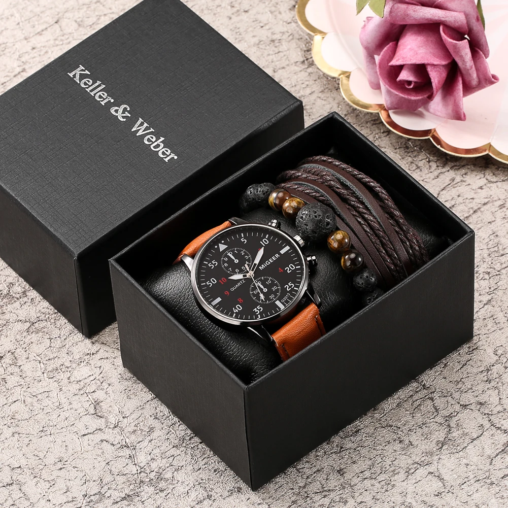 3 штуки, мужские часы, браслет, набор, роскошный кожаный ремешок, кварцевые наручные часы, подарок для мужчины, муж, отец, пара с коробкой