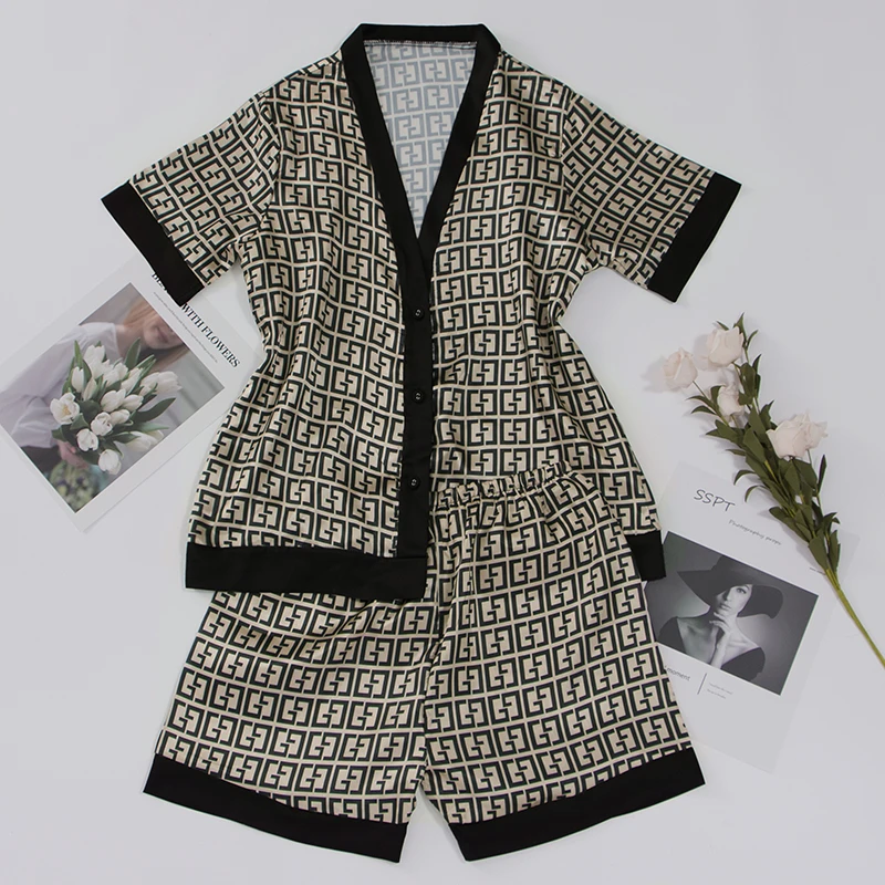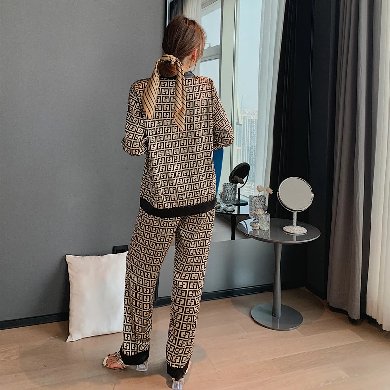 Роскошные женские пижамы QWEEK, домашний костюм для лета и осени, Женский пижамный комплект, одежда для сна с принтом, атласная одежда для отдыха и комнаты, ночная рубашка