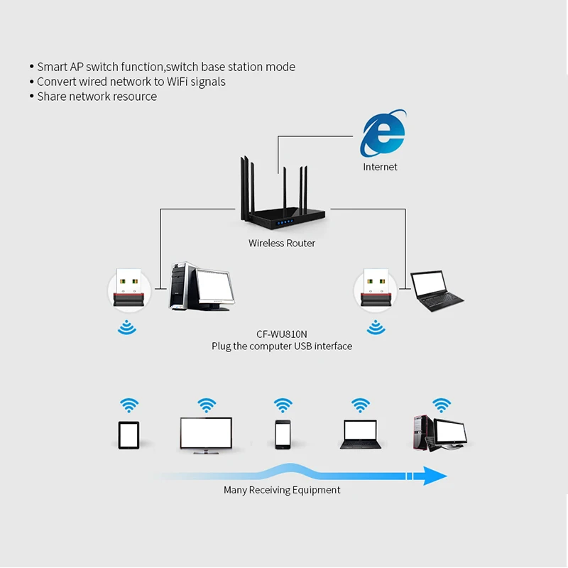 Comfast CF-WU810N USB WiFi адаптер 150 Мбитс мини Wi-Fi USB2.0 ключ...
