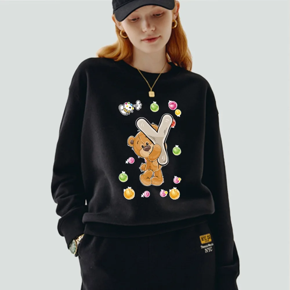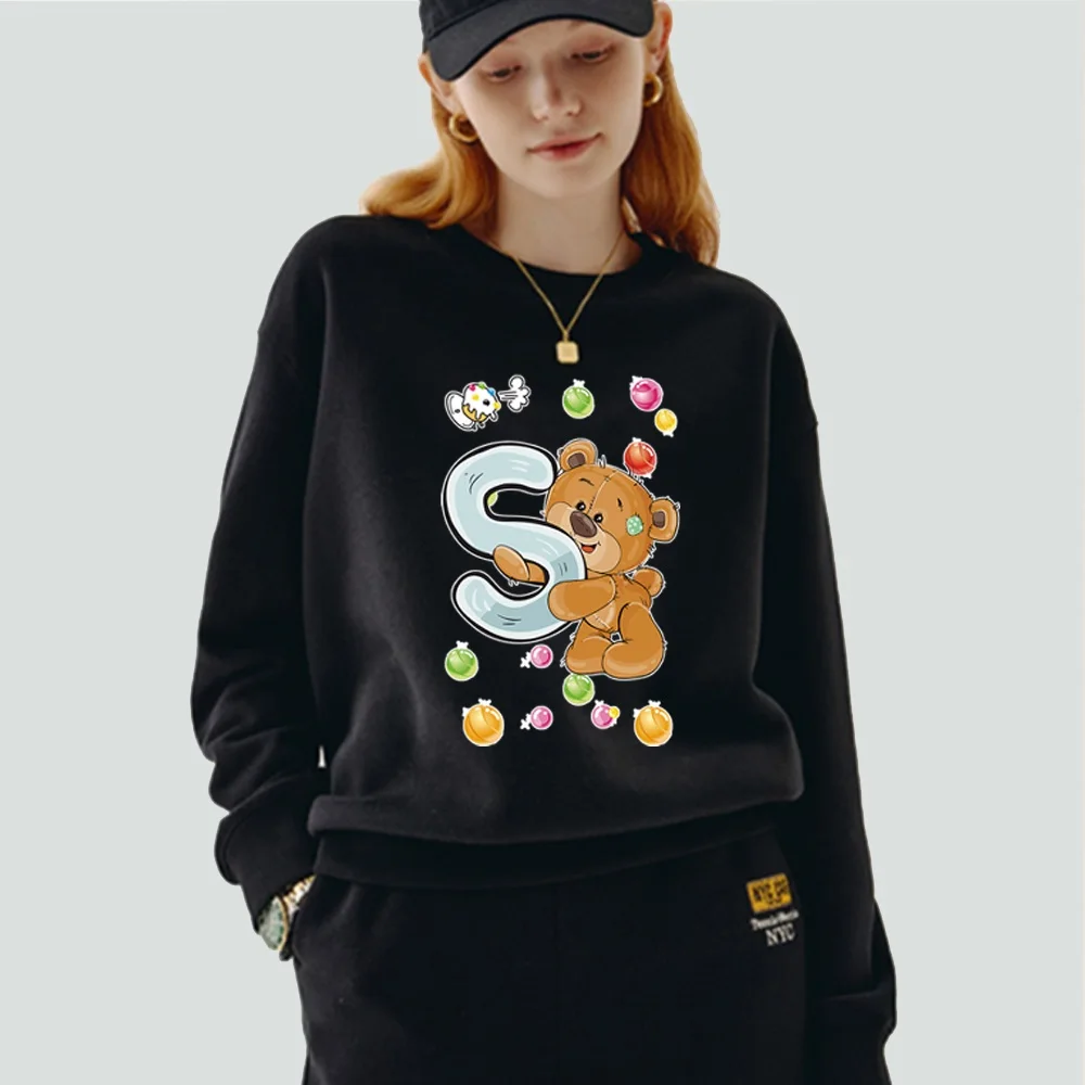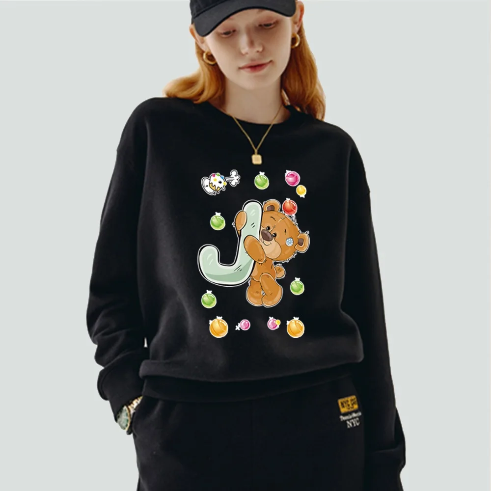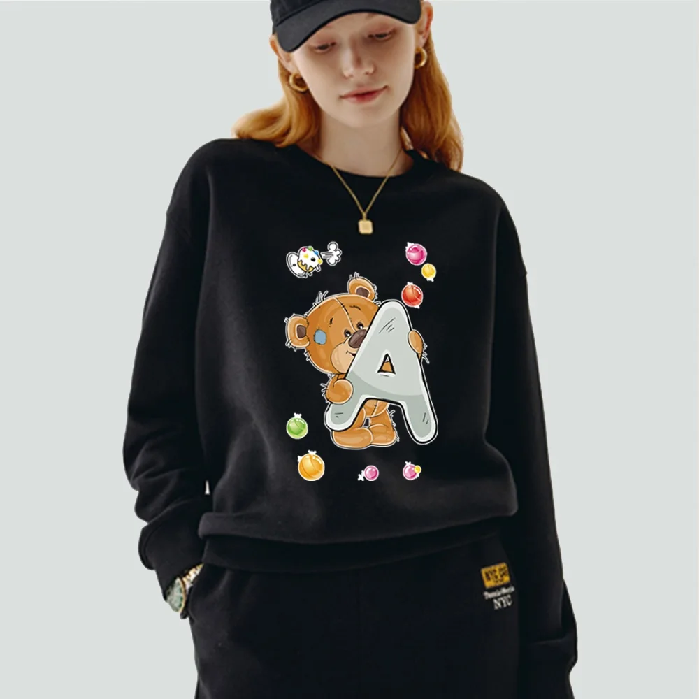 Женская одежда, пуловер, Повседневная Толстовка с длинным рукавом, приталенная черная толстовка из полиэстера с круглым вырезом и принтом имени инициала