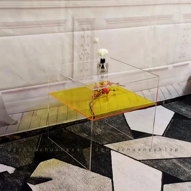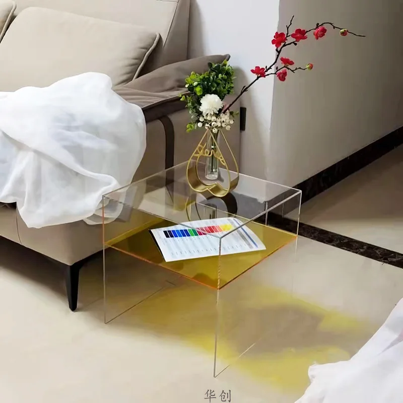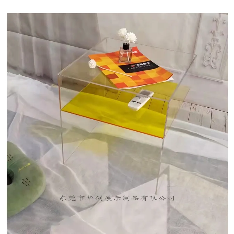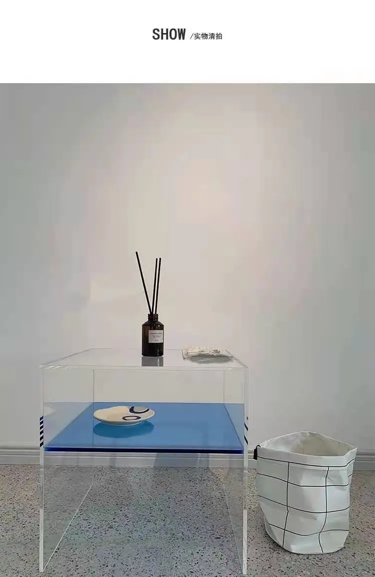 Акриловый прозрачный синий двойной журнальный столик Wuli в скандинавском стиле для гостиной, дизайнерский прикроватный столик, угловой столик