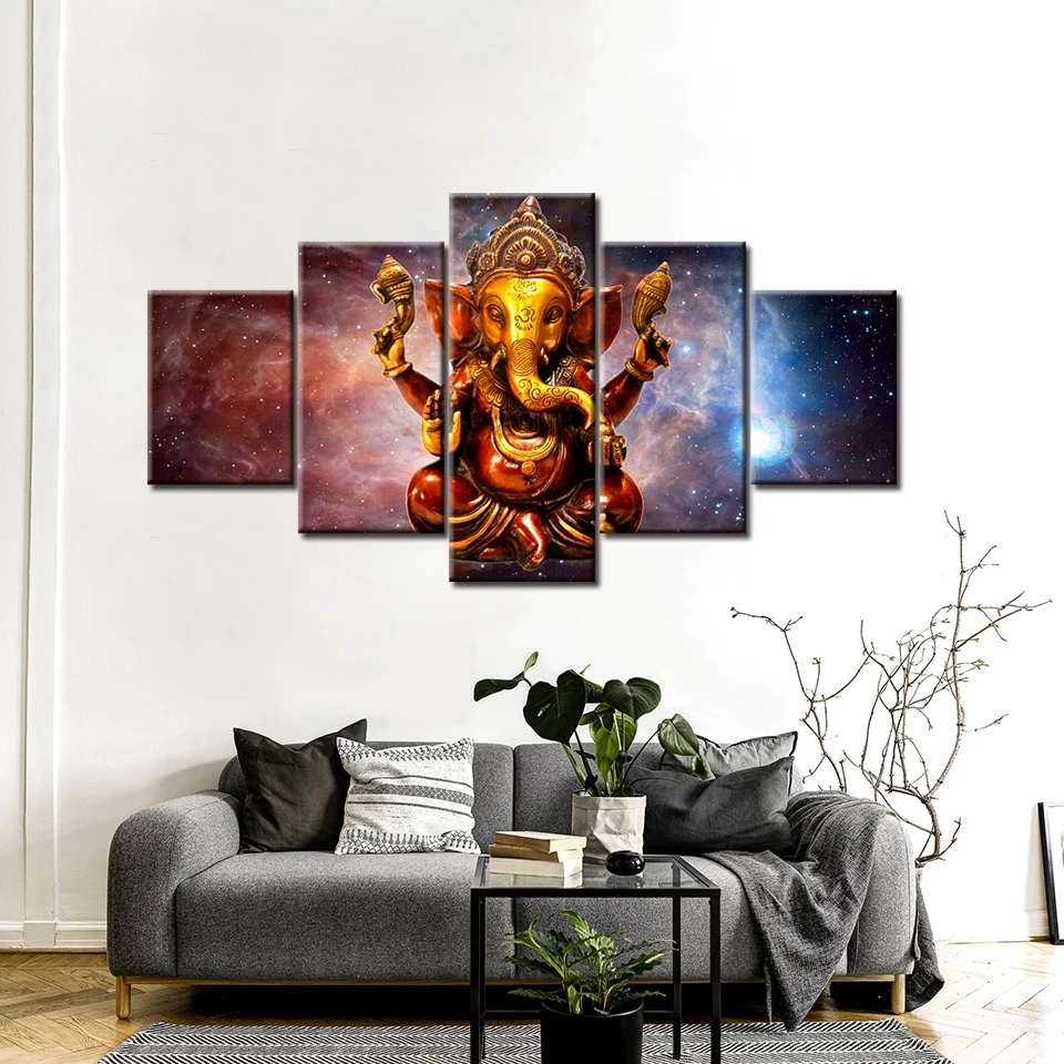 5 шт., индуийский Бог, Ганеша с космической планкой, гостиная, современная картина, печать, спальня, HD, домашний декор