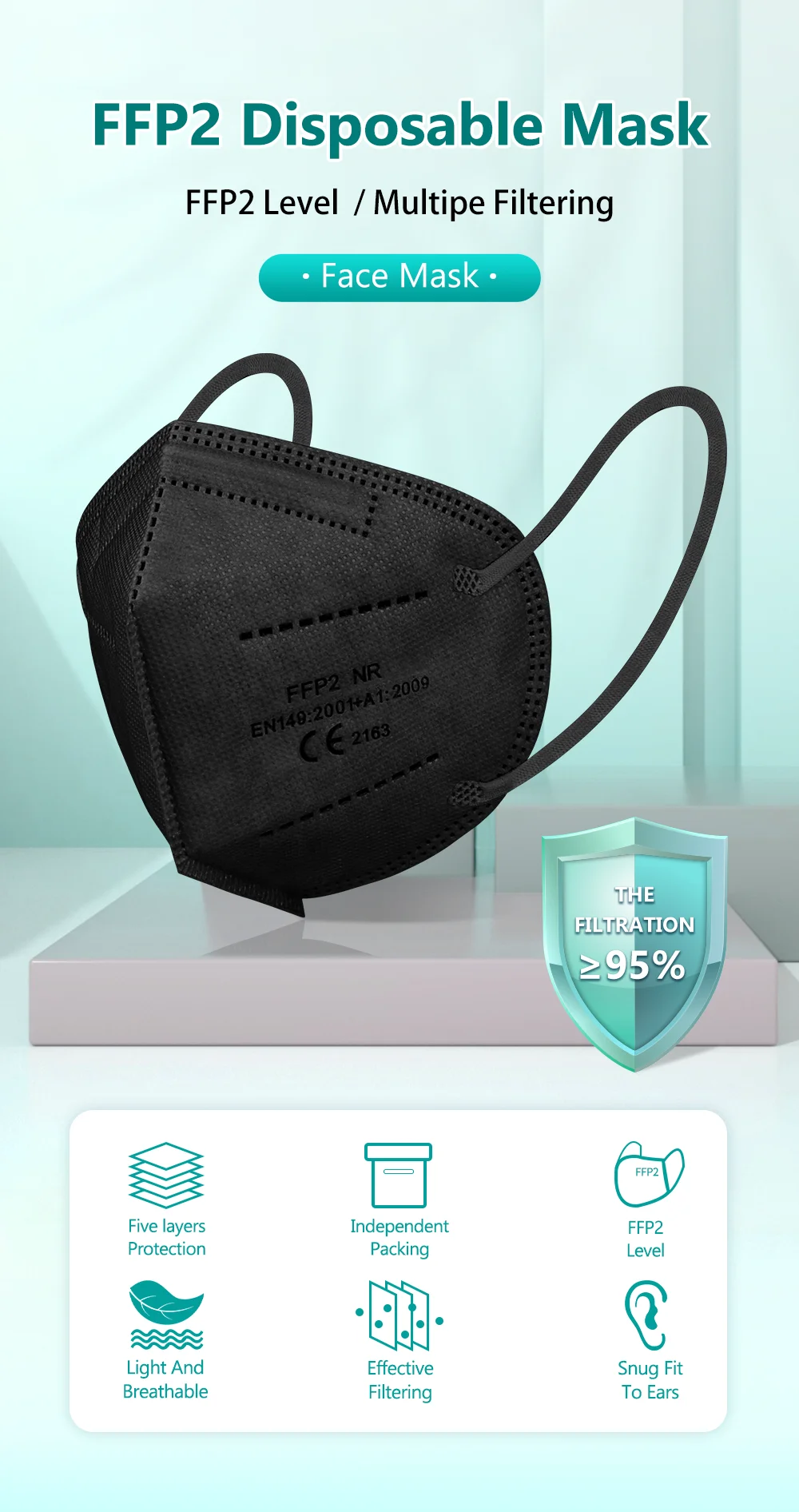 Маски для взрослых FFP2 Mascarillas neгра KN95, одобренная FPP2 5-с...