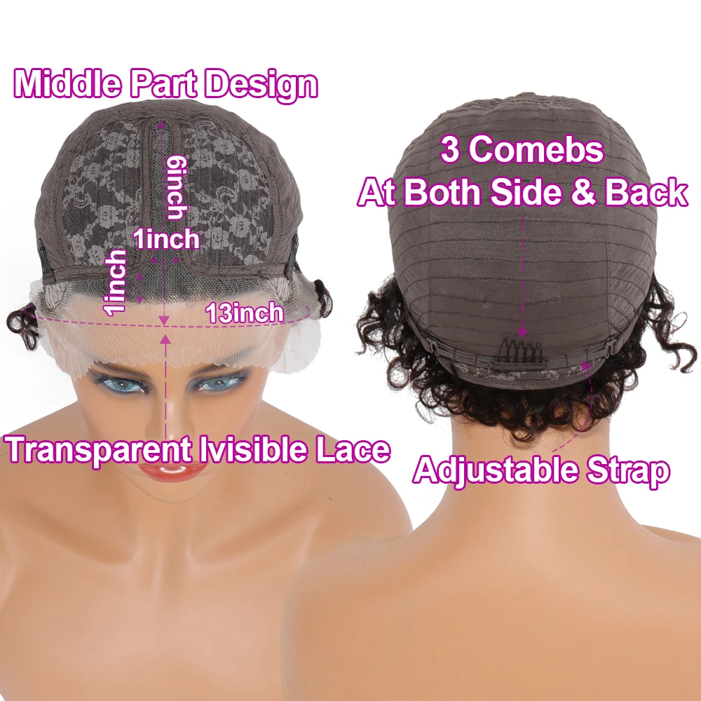 Парик Фея Короткие вьющиеся человеческие волосы парики дешевые человеческие волосы парик T часть HD прозрачный кружевной парик для женщин человеческие волосы вьющиеся боб парик