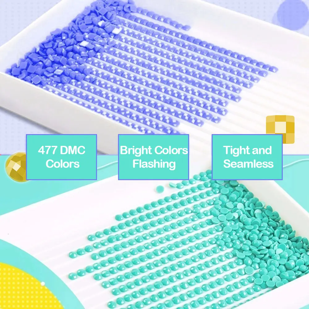 [Суперсверкающий бриллиант]: Круглый Алмаз содержит 20 секций, легко наклеивается; Квадратный алмаз имеет 9 секций и 16 секций. Алмазы тесно соединены, бесшовная посадка, стерео чувство сильное. Многослойный дизайн делает бриллиантовую картину более блестящей и яркой.