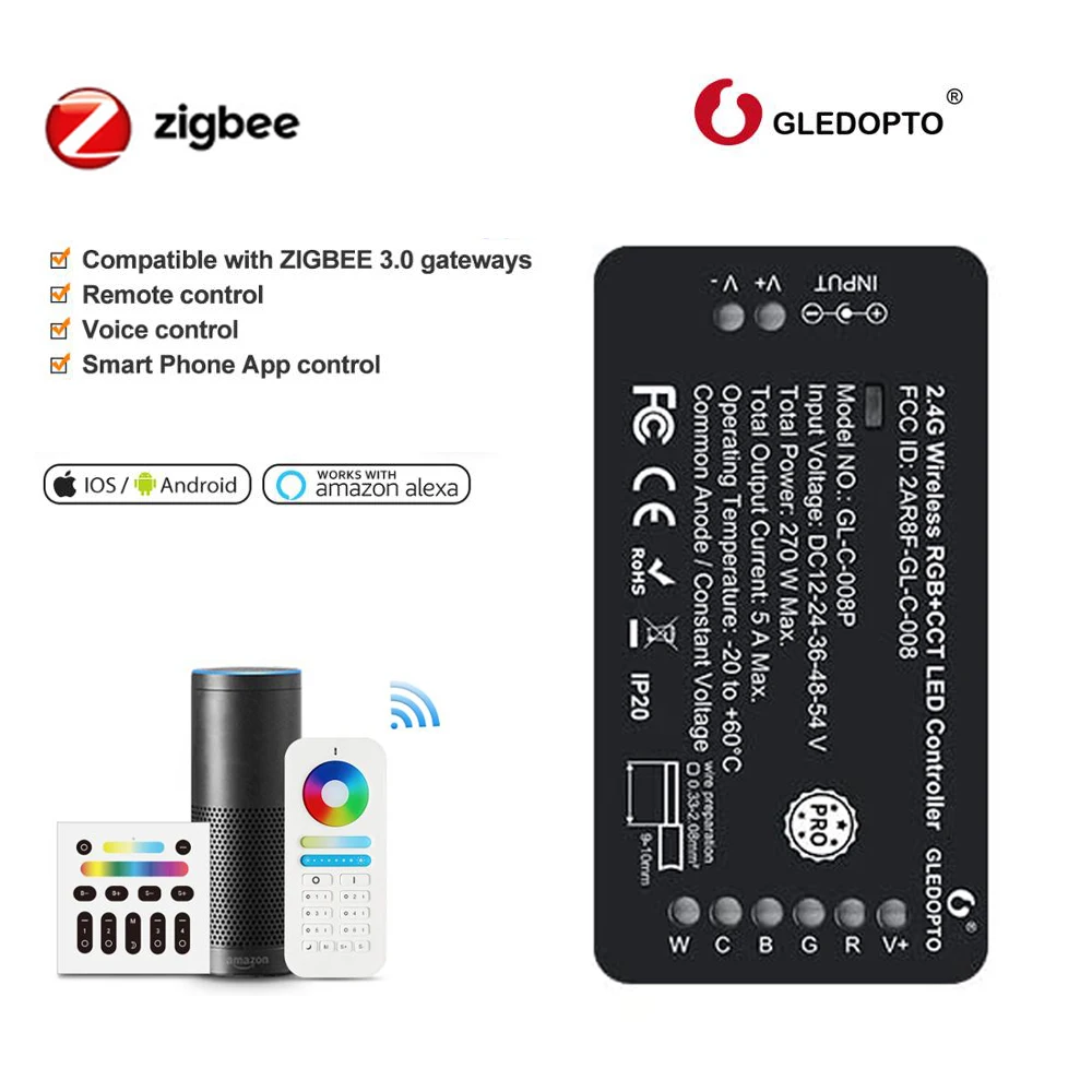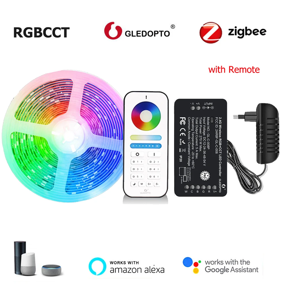 Светодиодная лента GLEDOPTO ZIGBEE PRO SMD 5050 RGB + CCT, 12 В, гибкая, меняющая цвет, 2,4 ГГц, пульт дистанционного управления Google Home, Голосовое управление