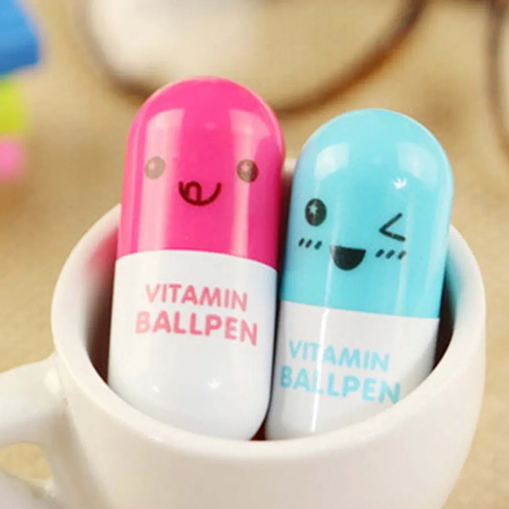 Симпатичная Шариковая ручка с мультяшным рисунком, новинка, шариковая ручка в форме таблетки с улыбкой, выдвижная миниатюрная ручка, канцелярские товары, школьные принадлежности