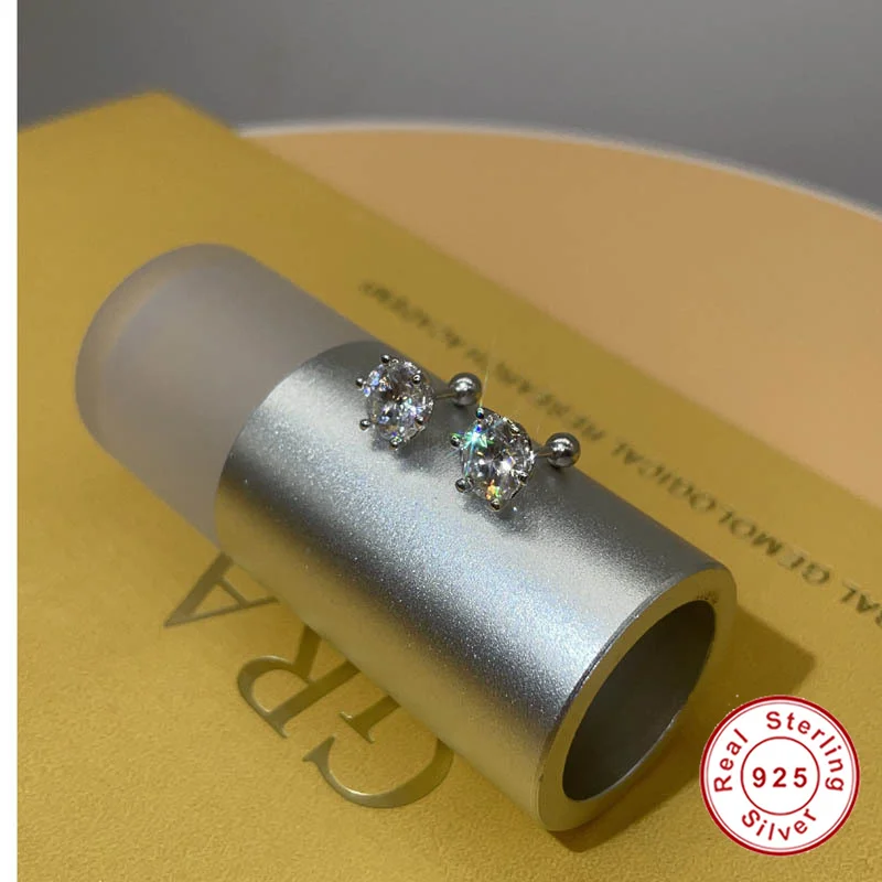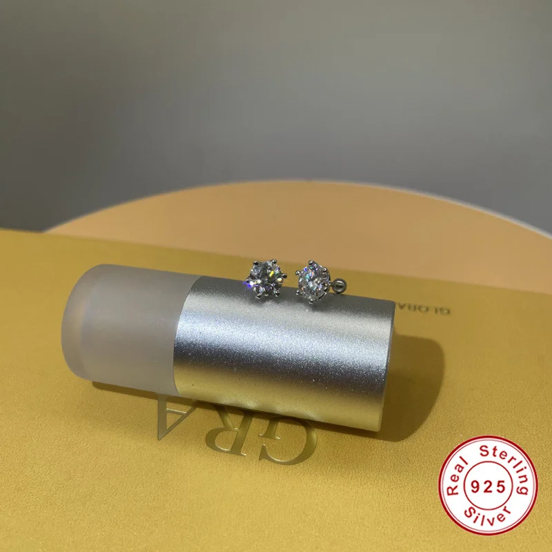 Женские серьги-гвоздики из серебра 925 пробы с муассанитом, 2 карата