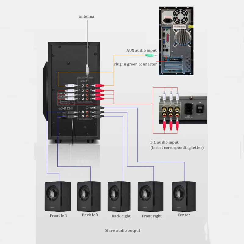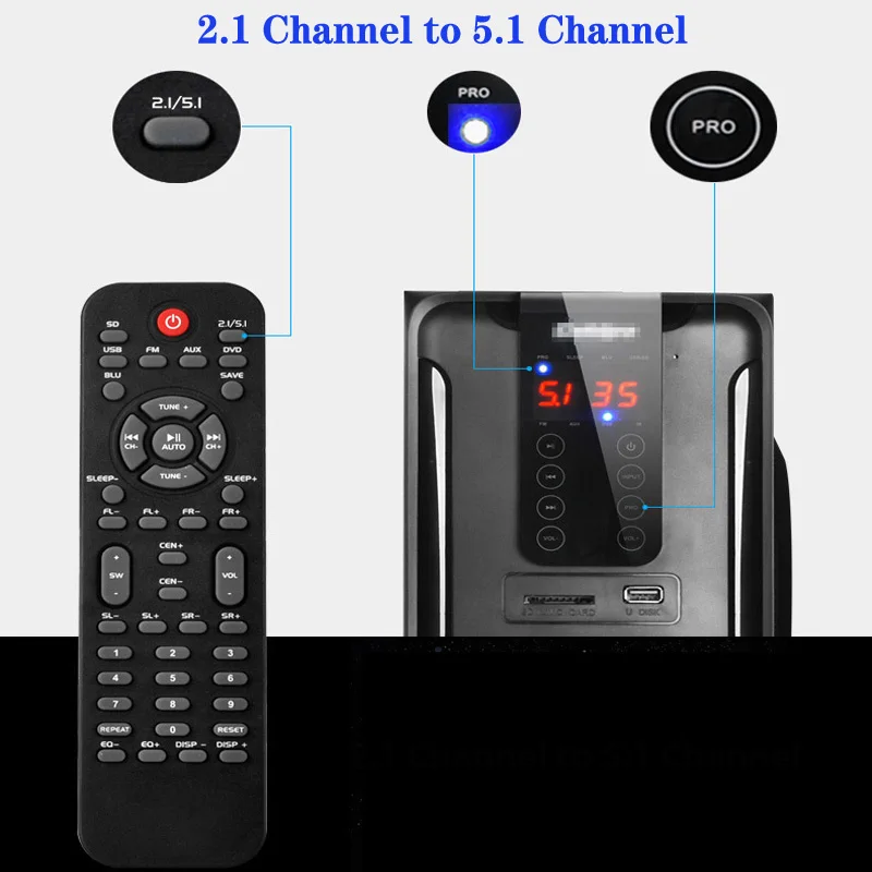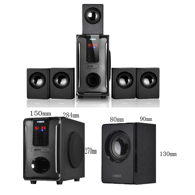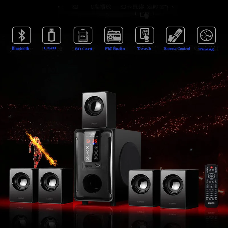 Акустическая система для домашнего кинотеатра, 5,1 каналов, совместима с Bluetooth, USB, SD, FM-радио, сенсорная панель с дистанционным управлением, объемный звук Dolby
