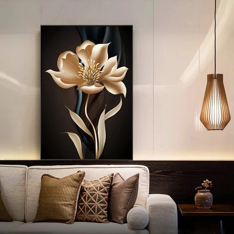 Золотой цветок постер черный фон роскошный абстрактный настенный художественный холст картина Печать Современные настенные фотографии для украшения дома