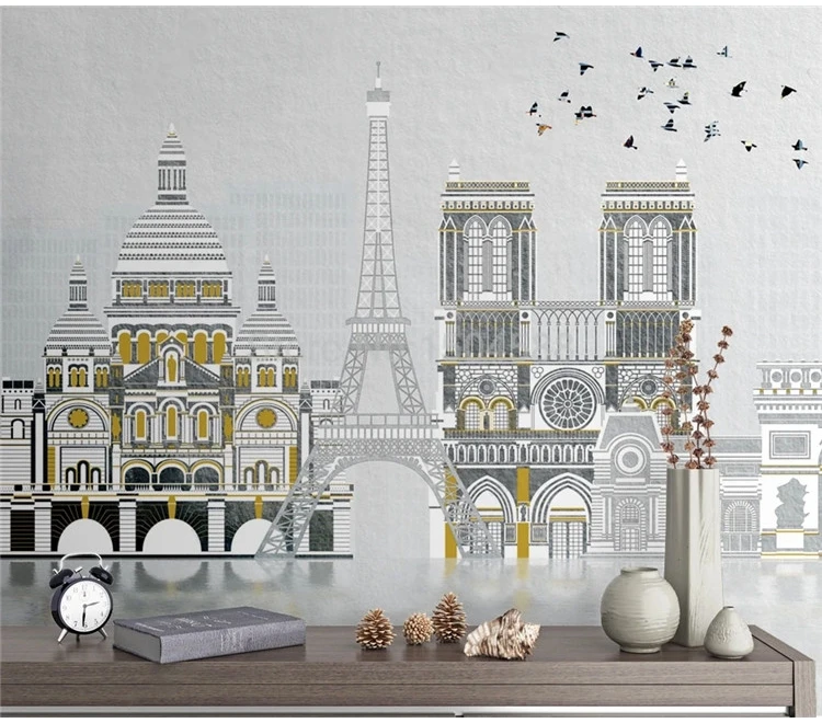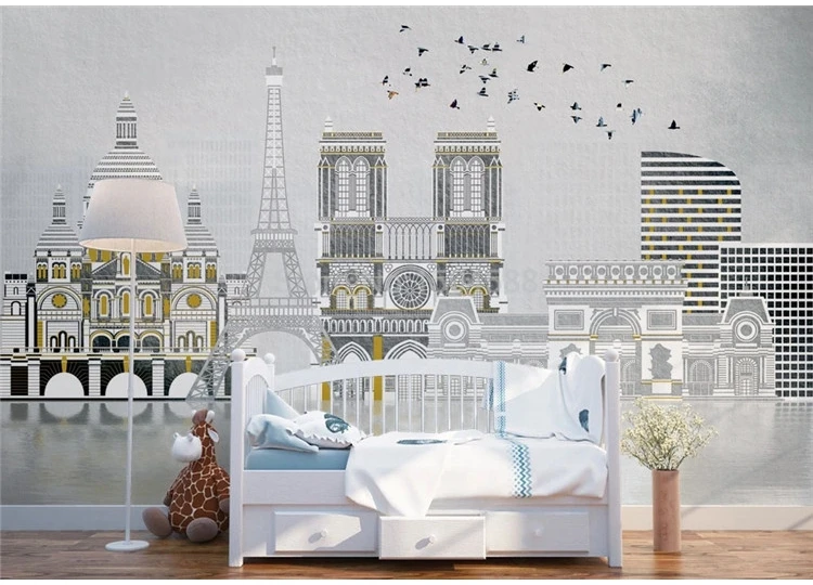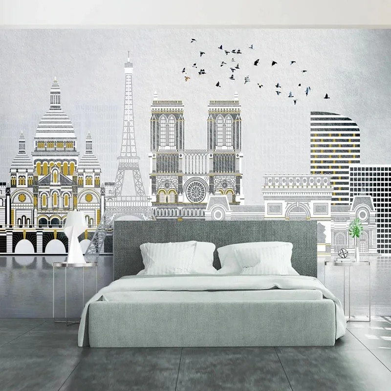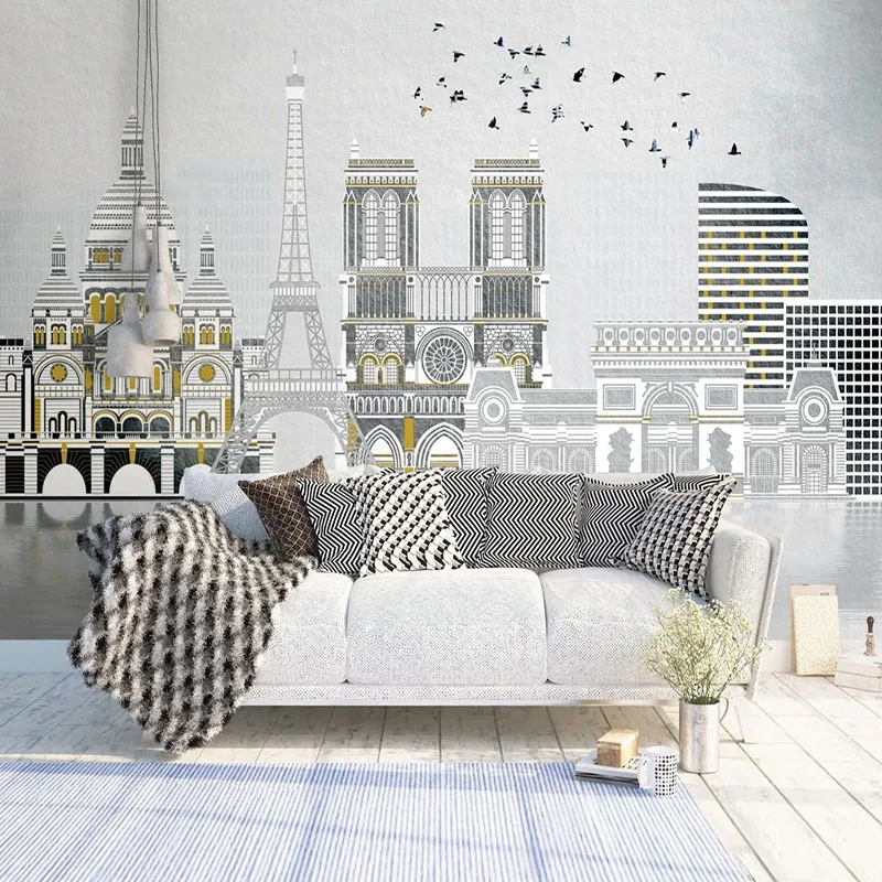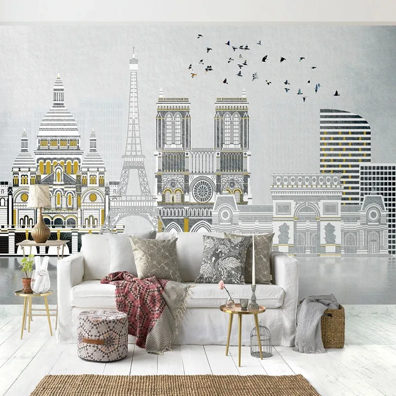 Пользовательские Настенные обои любого размера ручная роспись Скандинавская городская архитектура Европейский стиль летающая птица фон настенная живопись Декор