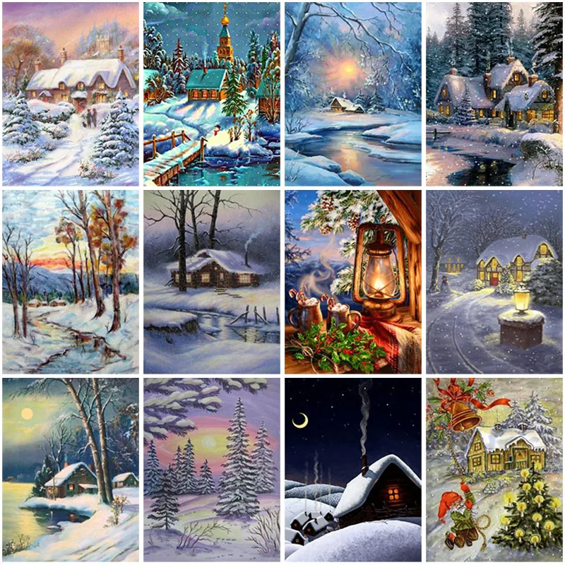 Алмазная живопись 5D "сделай сам", зимний Снежный пейзаж, мозаика, ...