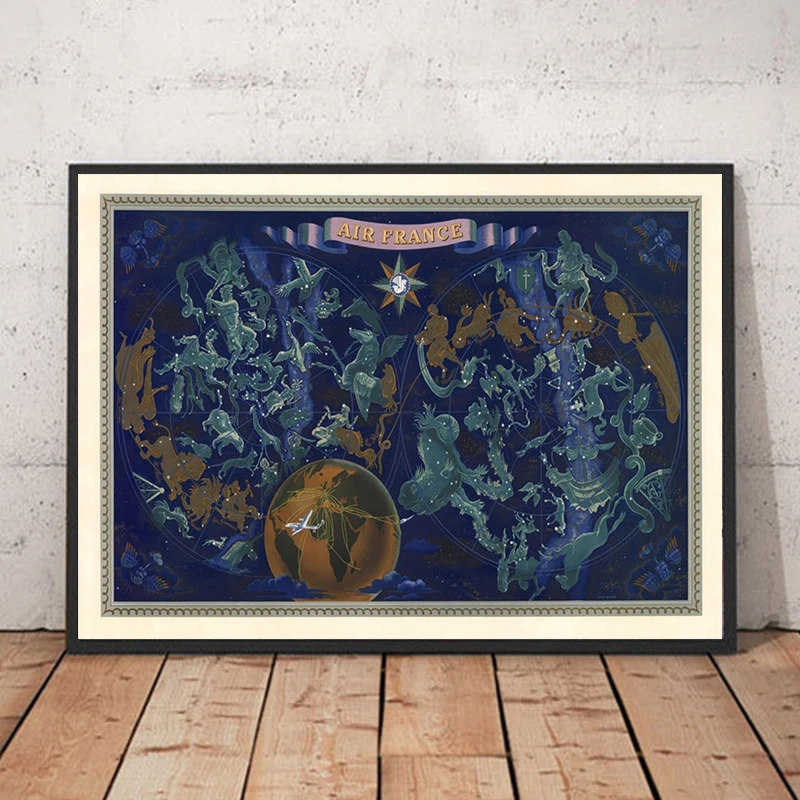 Винтажная карта ближней земли, плакат, печать на стене, знаменитый ...